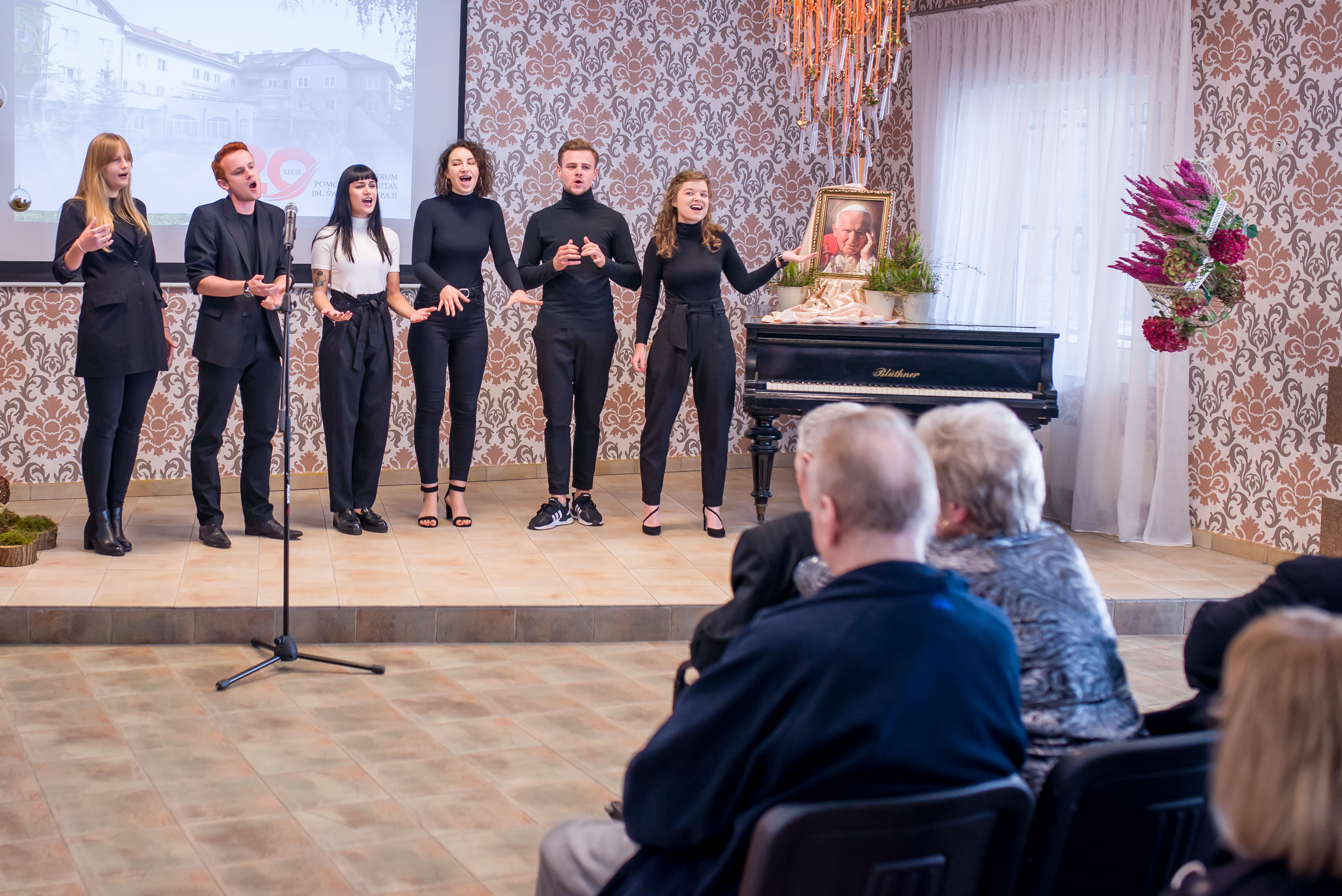 Następnie przeszliśmy do jadalni na dalsze uroczystości m.in. wspaniały występ  zespołu 5/6 z Akademii Muzycznej w Gdańsku, oraz poczęstunek.