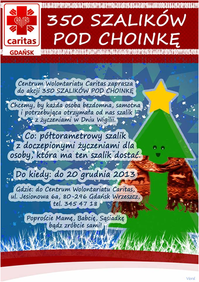 Akcja pn. „350 szalików pod choinkę” wymyślona i zainicjowana w Centrum Wolontariatu Caritas przeszła oczekiwania samych twórców! Dzięując wszystkim ktorzy się włączyli zachęcamy do obejrzenia prezentacji dot. akcji: