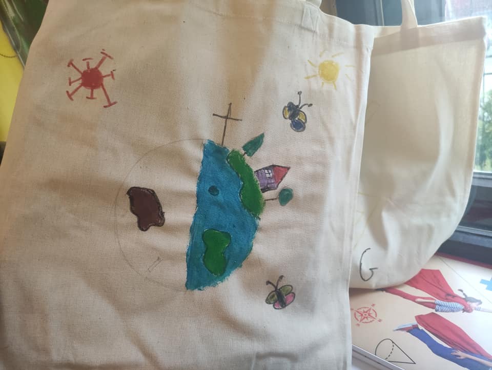W naszej świetlicy robiliśmy zajęcia ekologiczne. W pierwszej części nasza woluntariuszka Salome zrobiła prezentację o wielkiej ilości plastyku w morzu. Potem każde dziecko otrzymało torbę materiałową. Używając markerów i kolorów dla tkanin zrobiliśmy designów unikalnych a teraz już wykorzystujemy ich na codziennie zakupy. Też otrzymaliśmy woreczek wielokrotnego użytku na owoce i warzywa.