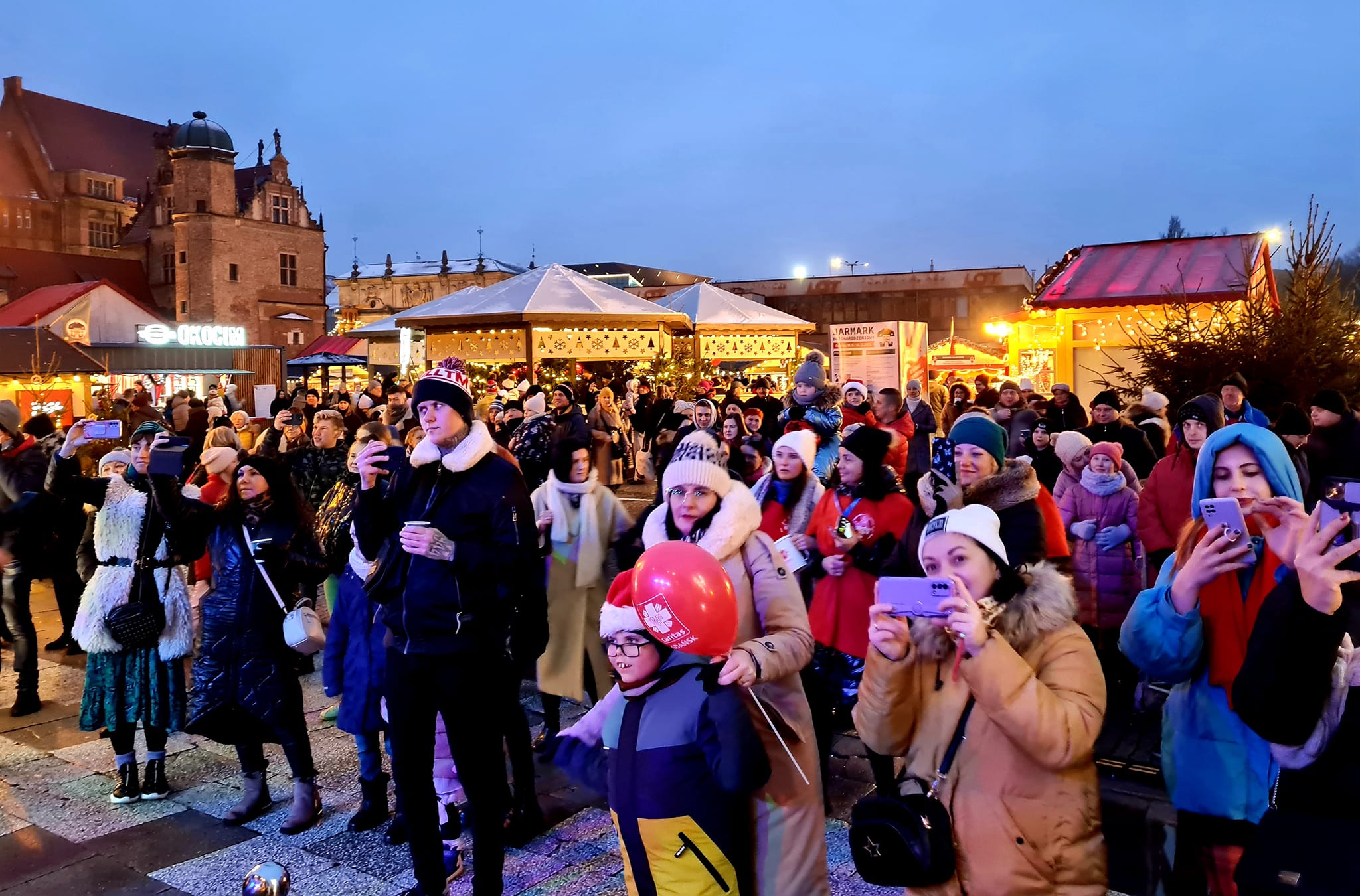 Wydarzenie otworzył Biskup Piotr Przyborek, opowieścią o Betlejem oraz symbolicznym rozdaniem chleba zgromadzonej na Targu Węglowym publiczności.