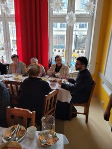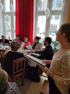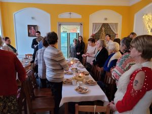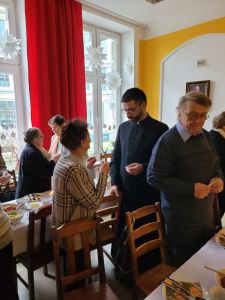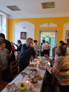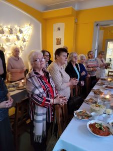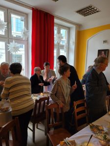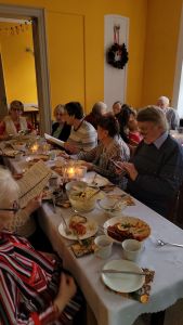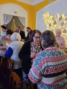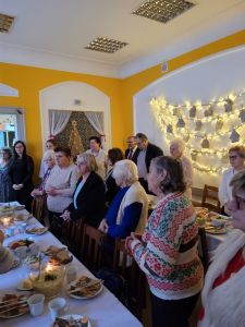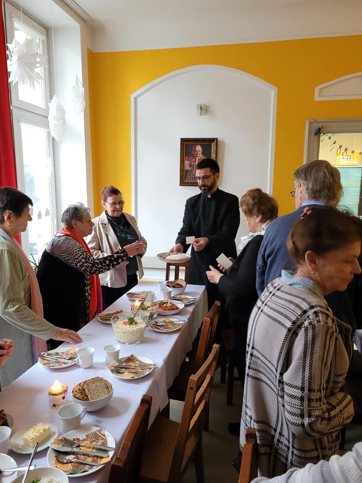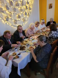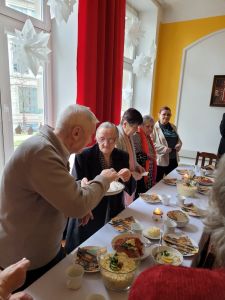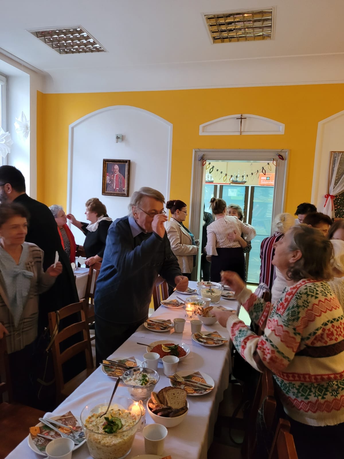 Wspominamy spotkanie przy wigilijnym stole. Seniorzy, Dyrektor Ks. Janusz oraz nasi pracownicy i przyjaciele złożyli sobie życzenia, dzieląc się opłatkiem. Śpiewaliśmy kolędy, jedliśmy pyszne potrawy od Dom na Fromborskiej , co wprowadziło nas w cudowny, świąteczny nastrój oczekiwania na Boże Narodzenie.