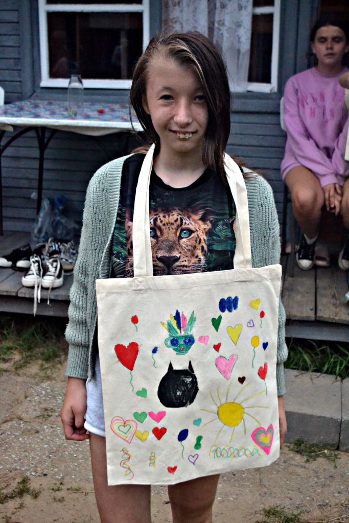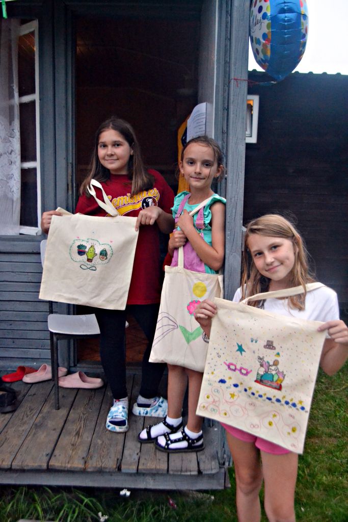Kolejnego dnia wyjazdu świętowaliśmy przy torcie urodziny Oliwii i Alinki. Prezenty, cukierki i wspólnie zaśpiewane „Sto lat” wprawiło wszystkich w dobry nastrój. Było również artystycznie: ozdobiliśmy swoje eko torby. Wyszły fantastycznie!