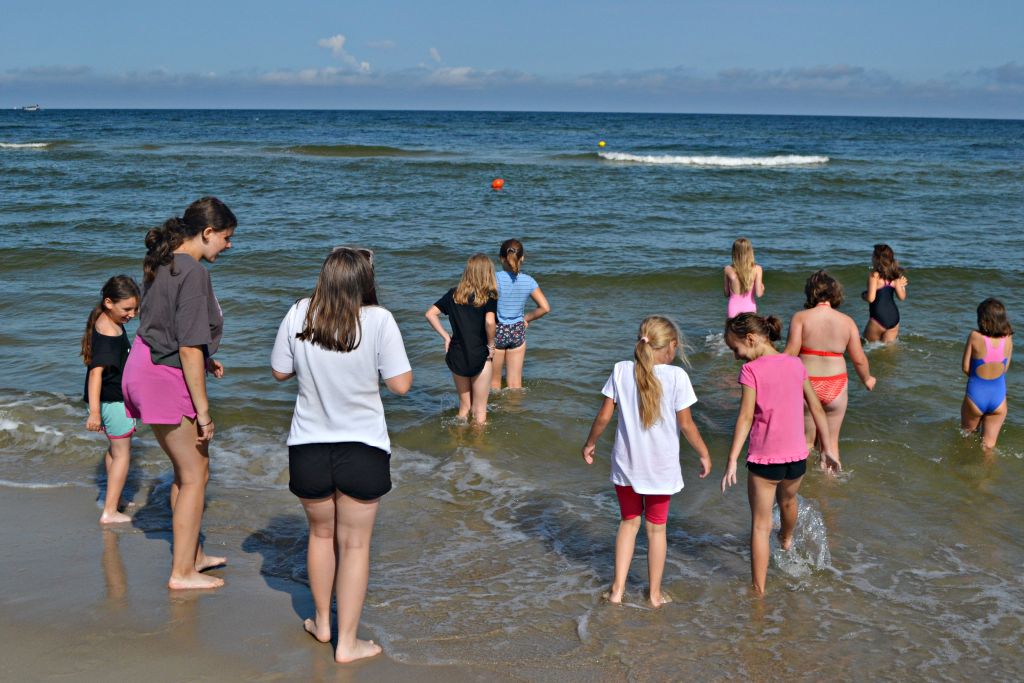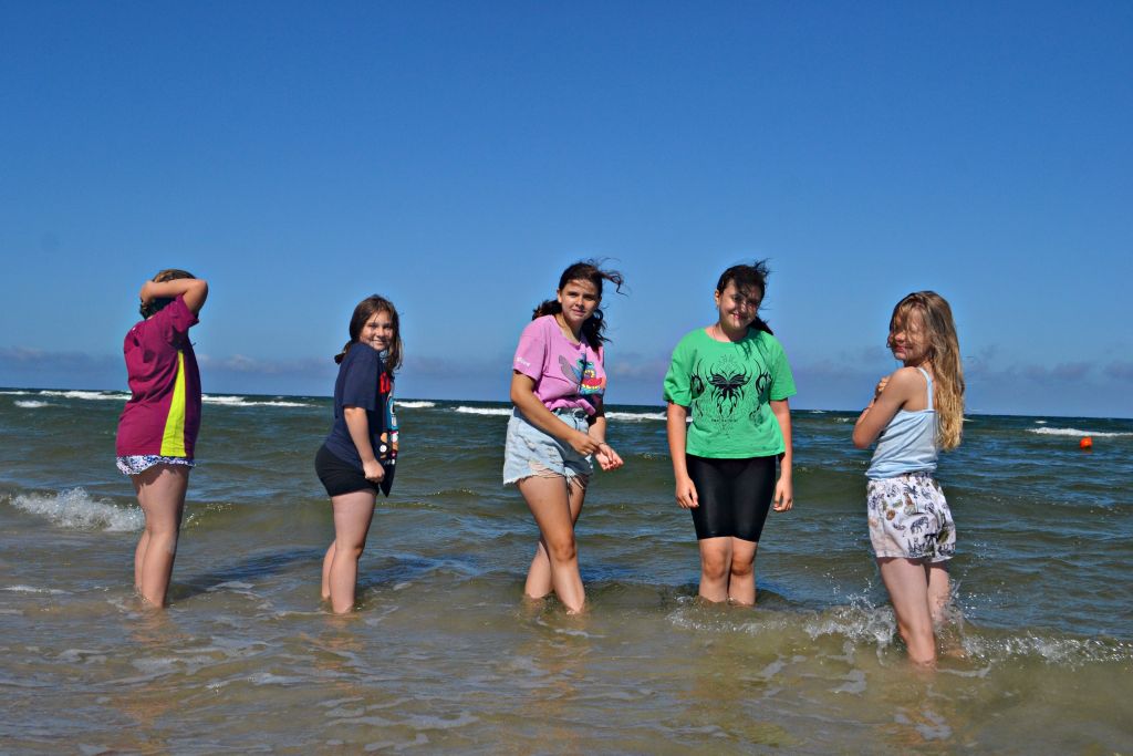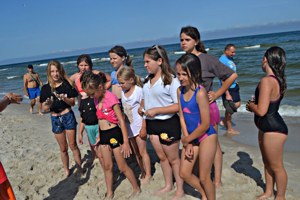 Dzień 3 to wyjście na plażę i kąpiele morskie pod okiem ratowników. Niektórzy to nawet próbowali się przekopać na drugą stronę ziemi. Po południu pyszne lody! Ależ one nam smakowały po czasie spędzonym na plaży. Wieczór natomiast był pełen emocji i zadań, odbyło się bowiem pasowanie na kolonistę. Śmiechu co nie miara, bo trzeba się było przedstawić z językiem na wierzchu. Smaki: słony, kwaśny i ostry – cytryna z solą i sos tabasco! Dali radę! Jako że wszyscy wykonali zadania, każdy otrzymał swoje unikatowe kolonijne imię.