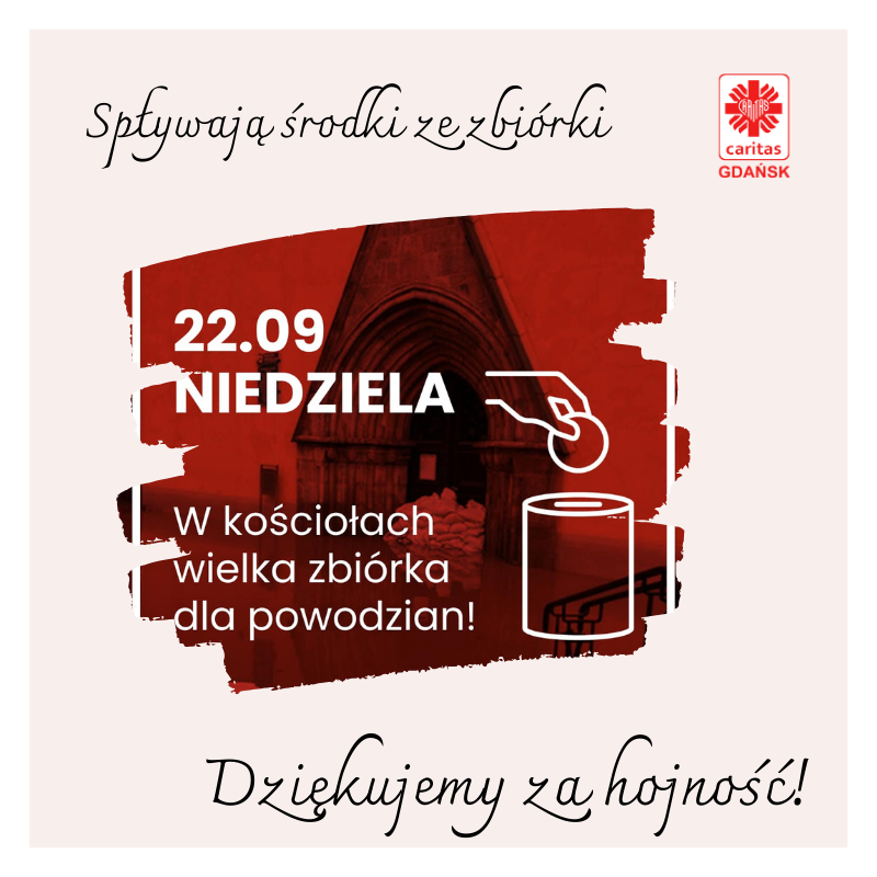 W niedzielę 22 września, w parafiach w całej Polsce, prowadzona była zbiórka funduszy dla Powodzian.