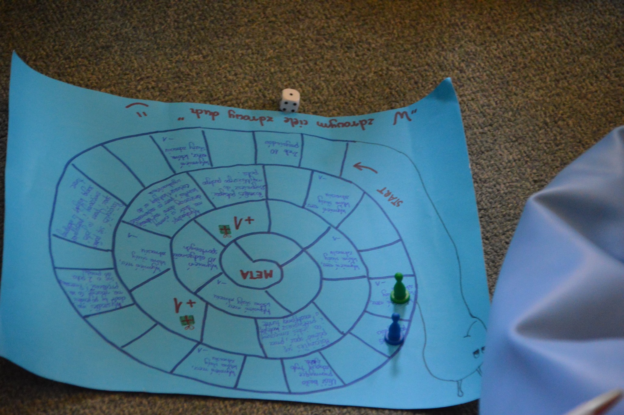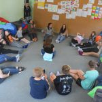 Nasze zajęcia to też dobry czas na ćwiczenie kreatywności – tak też było w zeszły piątek. Kalambury, czyli jak pokazać nasze ulubione gry planszowe, by pozostali zgadli? Jaka byłaby ulubiona bajka dzieci jaskiniowców, a jak będą ubierać się Japończycy za 200 lat? Na takie