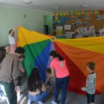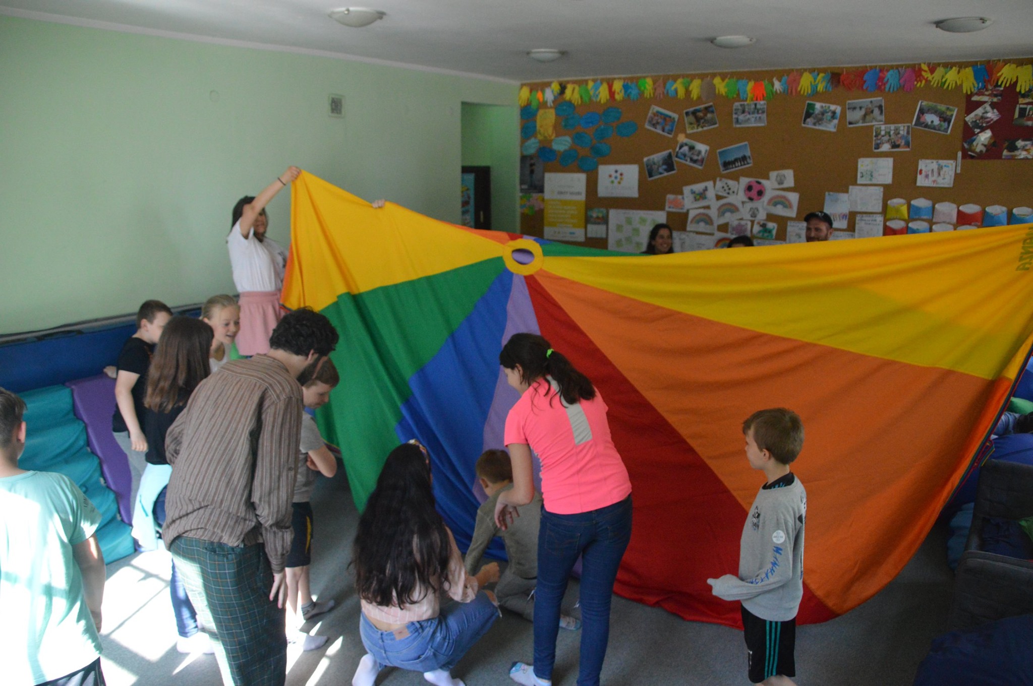 Mieliśmy także gości w świetlicy. Odwiedzili nas nowi wolontariusze EVS, którzy uczestniczyli razem z nami w zajęciach. Wspólnie się bawiliśmy w nasze ulubione zabawy, było też kilka zabaw, z którymi zapoznali nas nasi goście. Udało nam się nawet rozmawiać