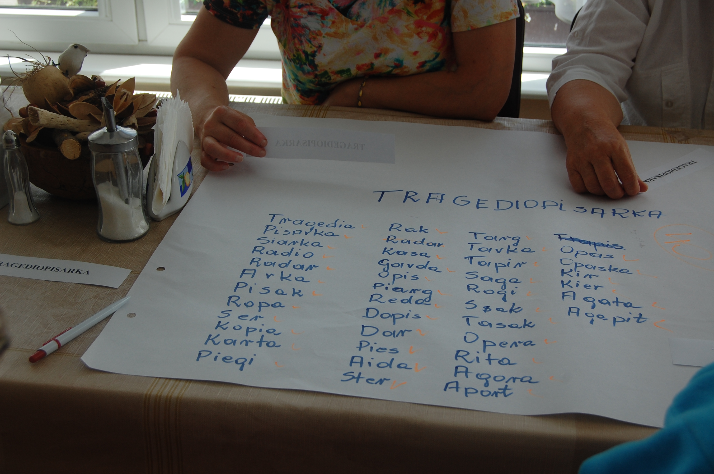 W poniedziałek, 10 sierpnia 2015r. jadalnia naszego Centrum zapełniła się seniorami będącymi mieszkańcami naszego Domu oraz osobami z sąsiedztwa. Wszyscy pragnęli w aktywny sposób spędzić wolne popołudnie. Zamiast poobiedniej drzemki, seniorzy byli gotowi do ciężkiej pracy – gimnastyki umysłu. Spotkanie prowadzone przez psycholog Wioletę Pacak było zorganizowane w ramach projektu (Gdański Fundusz Senioralny) napisanego przez ww. przy współpracy z wolontariuszką naszego Centrum p. Grażyną Kordułą. Środki na realizację tego spotkania zostały pozyskane z Regionalnego Centrum Wolontariatu w Gdańsku. Zajęcia miały na celu zaprezentowanie przykładowych ćwiczeń pamięci, koncentracji, logicznego myślenia i kreatywności w przyjemnej atmosferze, w formie zabawy. Na początek rozgrzewka: z liter znajdujących się w słowie: TRAGEDIOPISARKA układamy krótsze wyrazy. Następnie ćwiczenia pamięciowe, a na koniec zagadki logiczne. Emocji było co nie miara. Seniorzy pracowali indywidualnie oraz w grupach. Po tak wielkim wysiłku wszyscy zasłużyli na nagrodę – słodkości, kawa i herbata! Seniorzy z entuzjazmem dopytywali o kolejne zajęcia…
