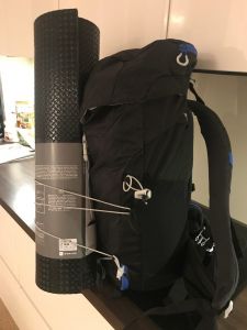 koc, śpiwór, karimata, namiot, spodnie, buty, bielizna, koszulki, zupy instant, kubek metalowy 0,5l