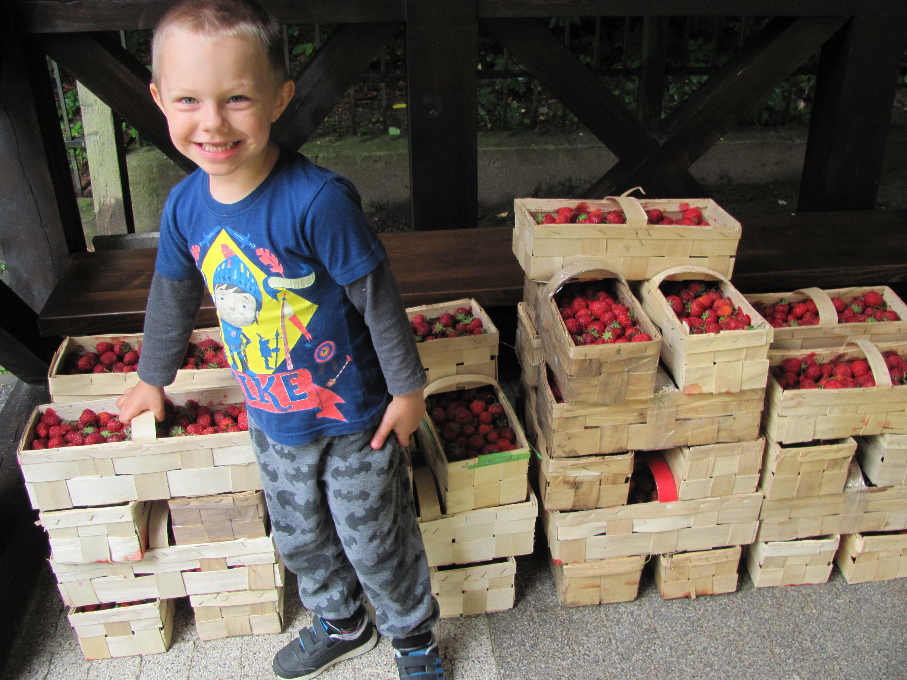 Przygotowania do zimy już zaczęte – wspólnymi siłami przetworzyłyśmy aż (tylko?) 80 kg truskawek. Przy pięknej pogodzie, w dobrym humorze czas upłynął bardzo szybko.