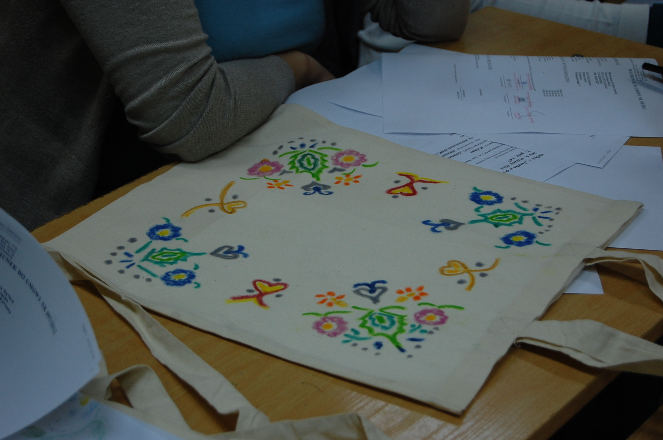 Wczorajsze spotkanie wychowawców świetlic żukowskich w szkole podstawowej w Borkowie odbyło się pod hasłem warsztatów plastycznych z malowania toreb, które poprowadziła dla nas pani Natalia Formela. Po krótkiej części związanej ze sprawami organizacyjnymi zabraliśmy się do twórczej pracy. Każdy z uczestników otrzymał bawełnianą torbę, którą mógł ozdobić według własnego pomysłu. Do malowania wykorzystaliśmy pastele do tkanin. Niektórzy najpierw robili szkice swoich wzorów, inni od razu chwycili za kredki. Było bardzo kolorowo i różnorodnie. Ozdobione torby następnie wędrowały do zaprasowania, a od dziś mogą już śmiało służyć jako praktyczne siatki na zakupy albo do pracy – jak kto woli.