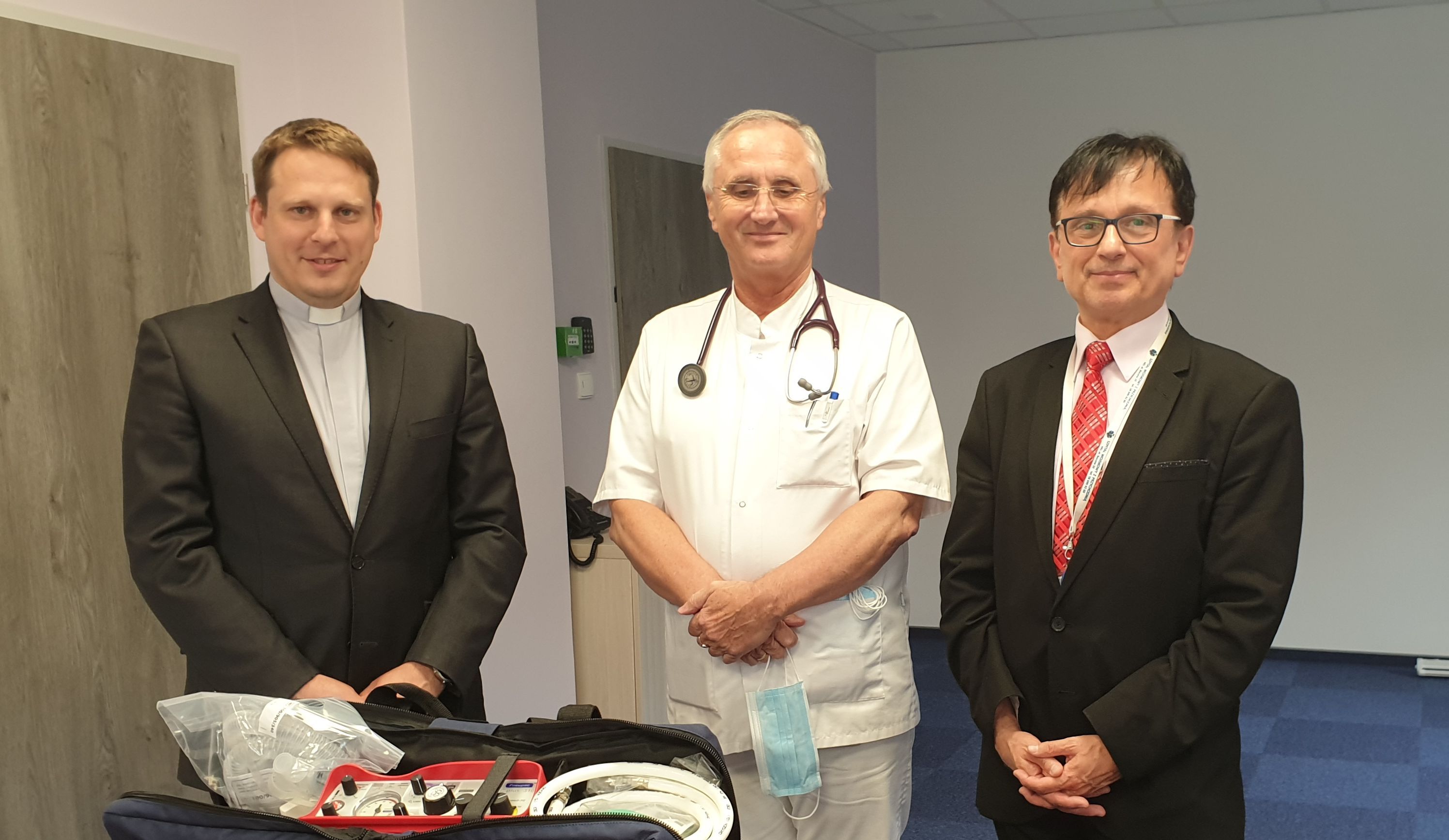 ks. Piotr Brzozowski- z-ca Dyrektora Caritas Archidiecezji Gdańskiej przekazał respiratory zakupione w ramach akcji Caritas #WdzieczniMedykom.