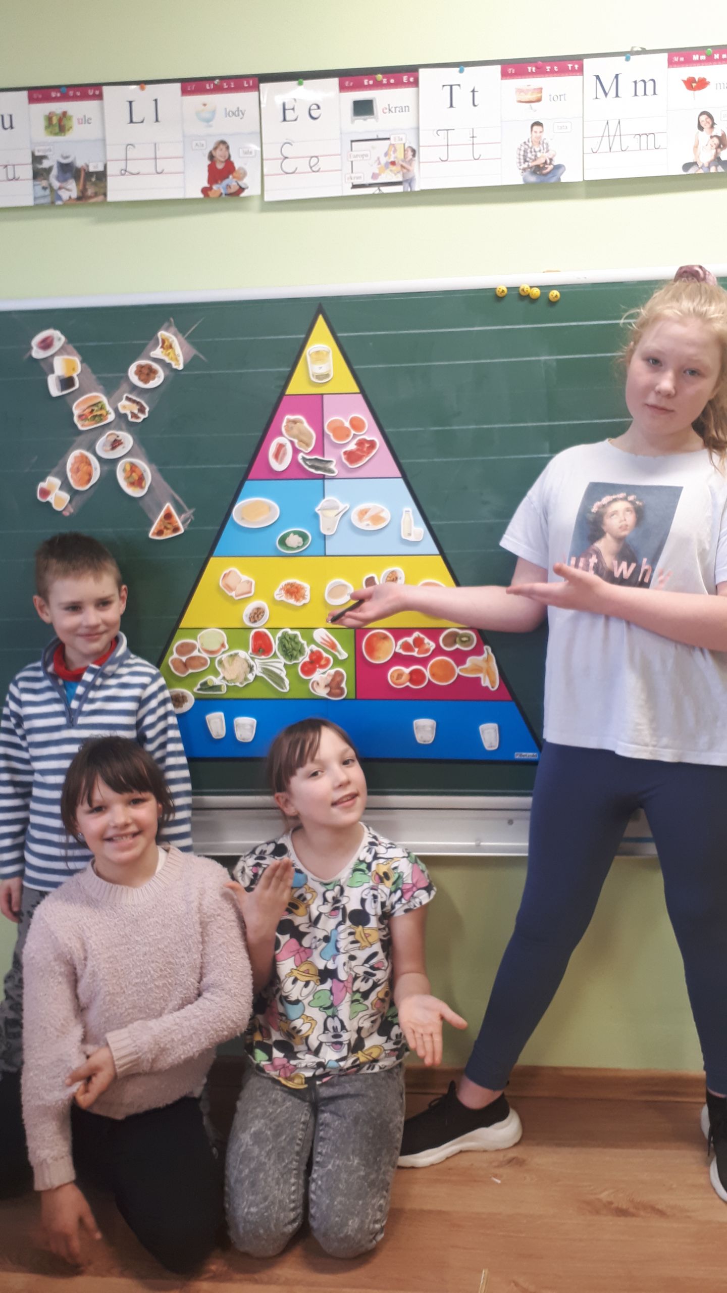 Pozdrawiamy ze Skrzeszewa i przesyłamy Wam naszą piramidę żywności, którą stworzyliśmy wspólnie podczas ostatnich zajęć w świetlicy!