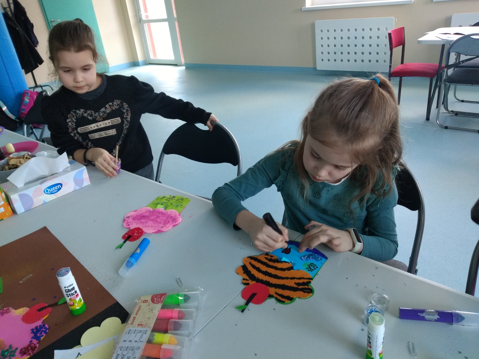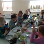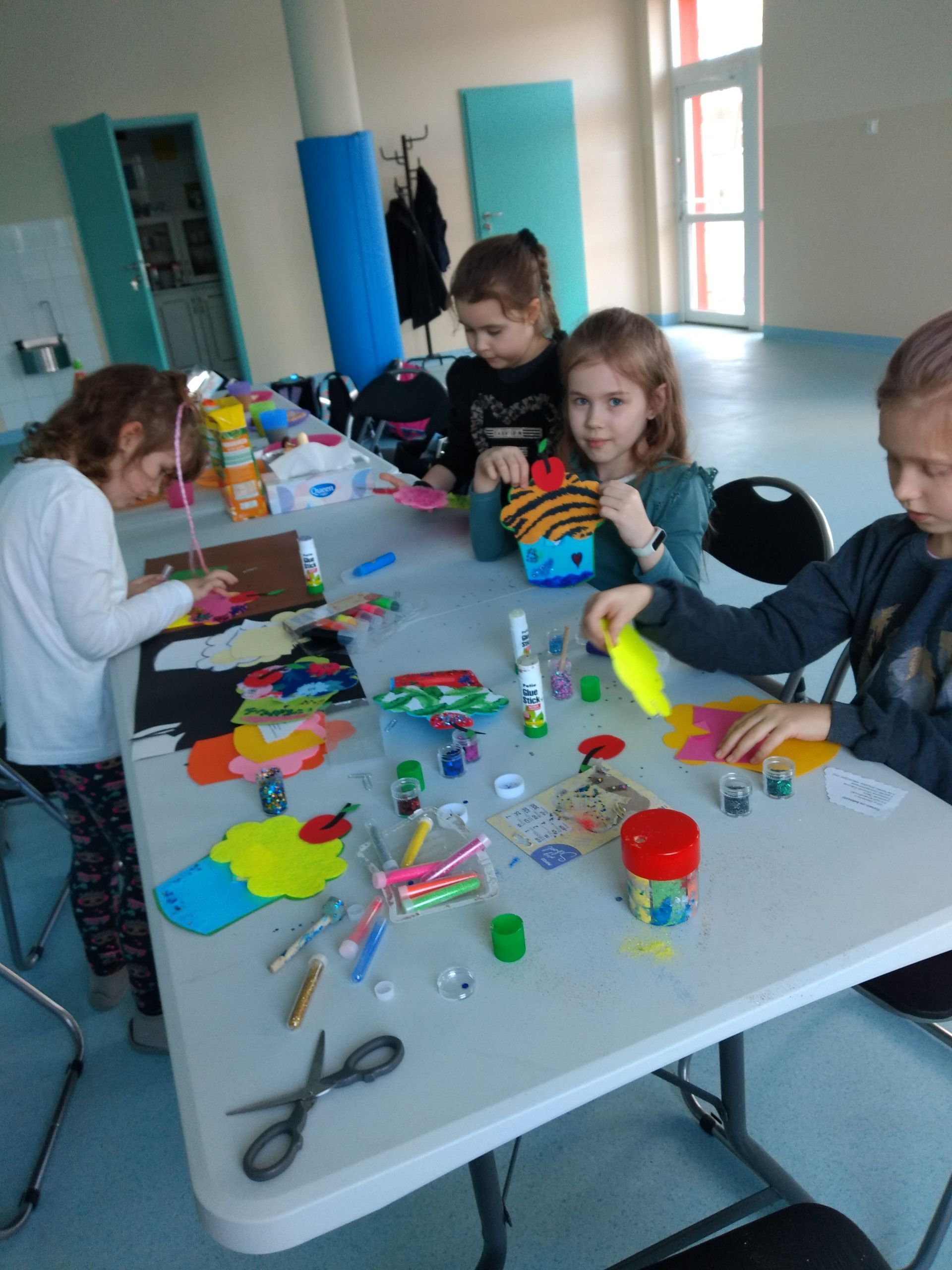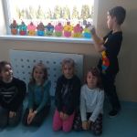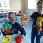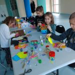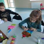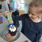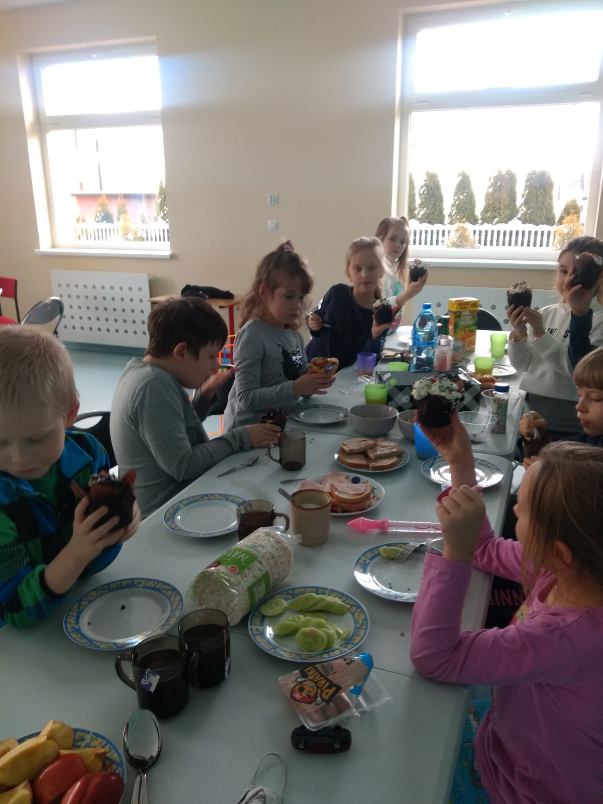 W naszej świetlicy w Tuchomiu ostatnio „rządziły” babki. W ubiegłym tygodniu mieliśmy przepyszne babeczki, które sami mogliśmy ozdobić bitą śmietaną i kolorową posypką. Razem też napisaliśmy przepis, żeby wiedzieć jak je upiec. Za to w tym tygodniu zrobiliśmy babeczki z papieru – ozdobione brokatem. Też nam pięknie wyszły.