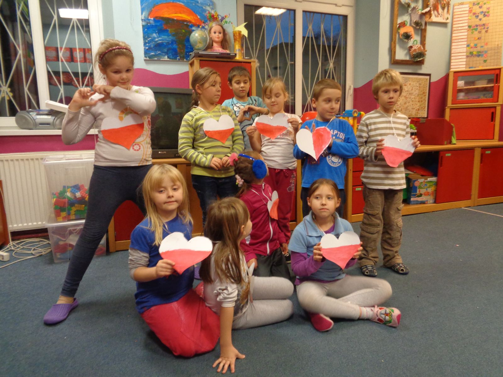 Dzieciaki z grupy „Anielska Kraina” obchodziły Dzień Niepodległości z sercami w barwach Ojczystych. Najpierw wspólnie obejrzeli film edukacyjny o naszych symbolach narodowych, który pomógł uporządkować znane już dzieciom informacje. Po obejrzeniu filmu i wysłuchaniu okolicznościowych piosenek dzieciaki zabrały się do wykonywania biało-czerwonych serc, które z dumą zawiesiły sobie na szyjach.