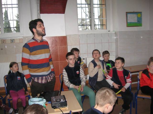 Przed tygodniem naszą świetlicę w Pępowie odwiedzili zagraniczni goście – Ola z Białorusi i Matteo z Sardynii. Było bardzo tłocznie i wesoło. Ola pokazała nam m.in. białoruski alfabet i potem samodzielnie próbowaliśmy zapisywać cyrylicą nasze imiona. Z kolei Matteo zdradził nam sekret prawdziwej włoskiej pizzy… i nie tylko 🙂