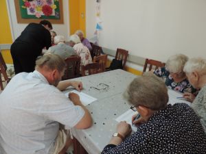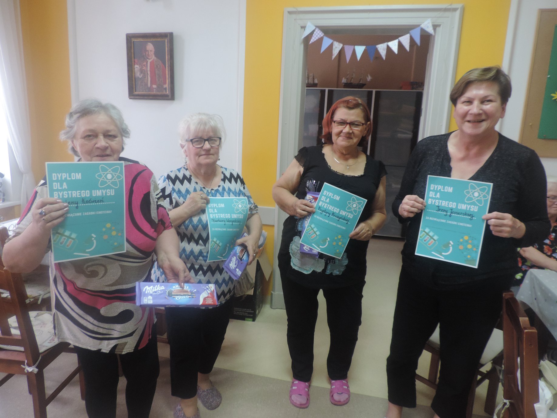 Dzisiaj mieliśmy iście łamigłówkowy dzień! Zaczęliśmy od rozkodowania hasła którym był tytuł dzisiejszych zajęć poświęconych Albertowi Einsteinowi. Po odgadnięciu hasła obejrzeliśmy krótką biografię fizyka, a następnie chętne osoby mogły zmierzyć się z łamigłówką autorstwa geniusza i wszyscy którym się udało otrzymali dyplomy i upominki dla bystrych umysłów. Bo nie ma co się oszukiwać, rozwiązanie tej zagadki wymagało dużo myślenia, ale dla naszych seniorów nie ma rzeczy niemożliwych! 😉