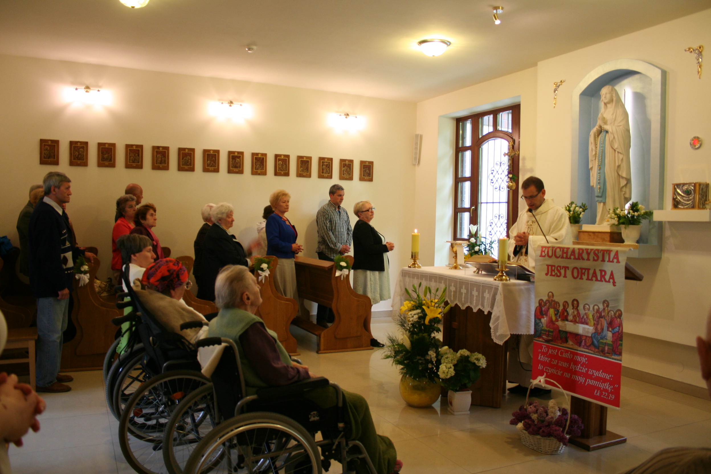 W Dzień Matki, 26 czerwca 2016 r., obchodziliśmy uroczystość Bożego Ciała. W naszej placówce obchodzono ją podobnie jak w polskich parafiach. Można powiedzieć, że miały miejsce dwie procesje. Pierwsza na oddziale, druga w parku przed budynkiem. Cieszymy się, że tak wiele osób towarzyszyło nam w tym dniu.