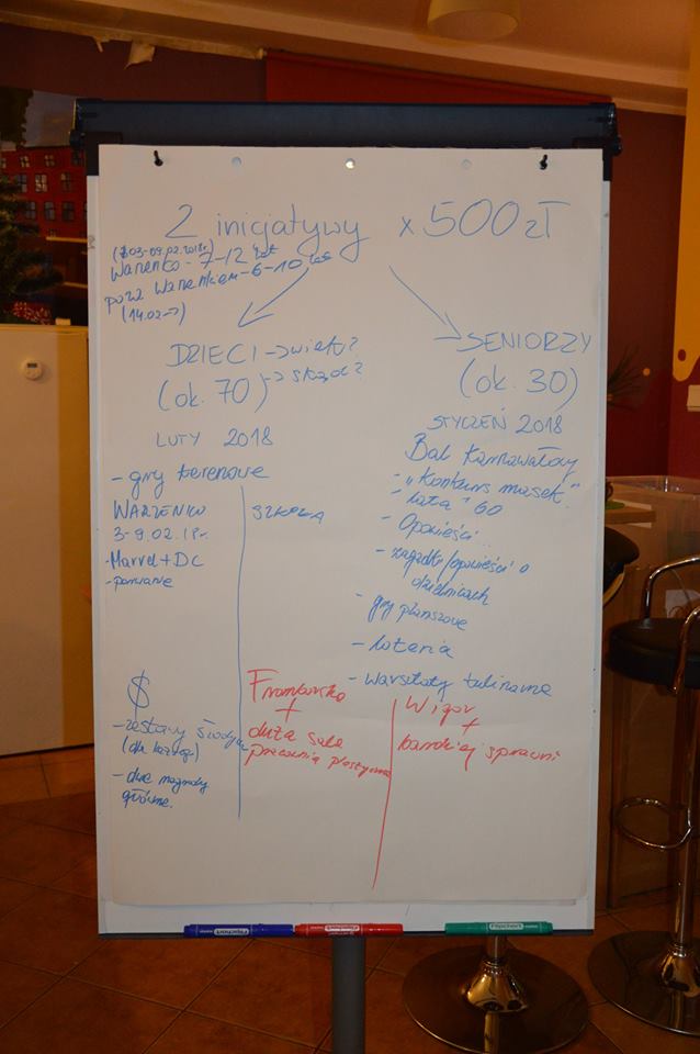 W piątek czekając na transporty żywności zebranej w ramach akcji „Tak, Pomagam” wspólnie z uczestnikami projektu „Młodzi liderzy w akcji” (finansowanego ze srodkow Caritas Polska) zrobilismy burzę mózgów na temat dwóch inicjatyw, jakie mamy do przygotowania w nowym roku. „Latające pelikany” – bo taką robocza nazwę mają nasi młdozi liderzy – w przerwach między przyjeżdzającymi transportami, wymyślali co chcieliby wspólnie zrobić w ramach projetku na rzecz dzieci i na rzecz seniorów. Wstępny zarys już jest 🙂