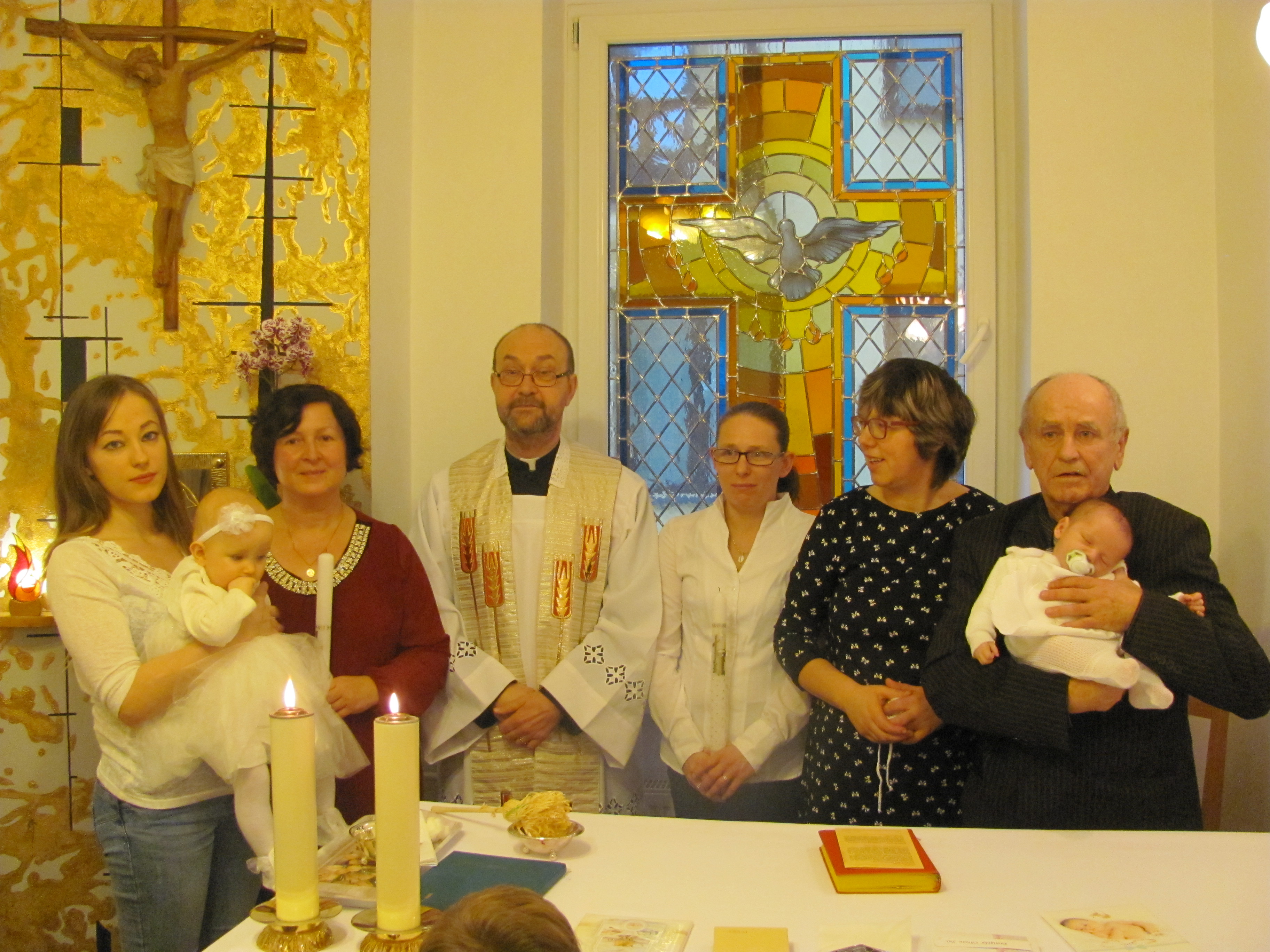 Maja Laura i Rafał Paweł – dzieci podopiecznych DSMC zostały ochrzczone przez ks. Zdzisława Hirsha posługującego w Sanktuarium Matki Bożej Brzemiennej. Uroczystość odbyła się w godzinie miłosierdzia w kaplicy zakonnej, miejscu gdzie codziennie siostry modlą się za wszystkie matki, które były, są i będą przebywały w Domu im. bł. Gwidona z Montpellier.