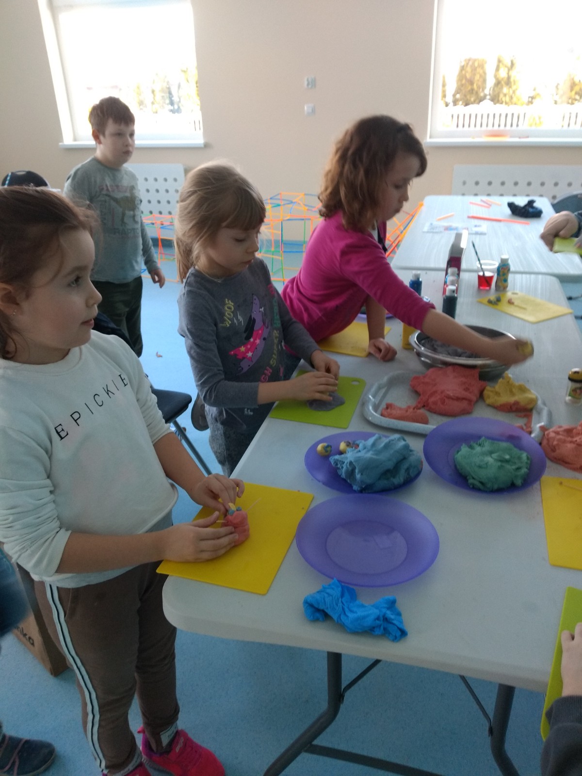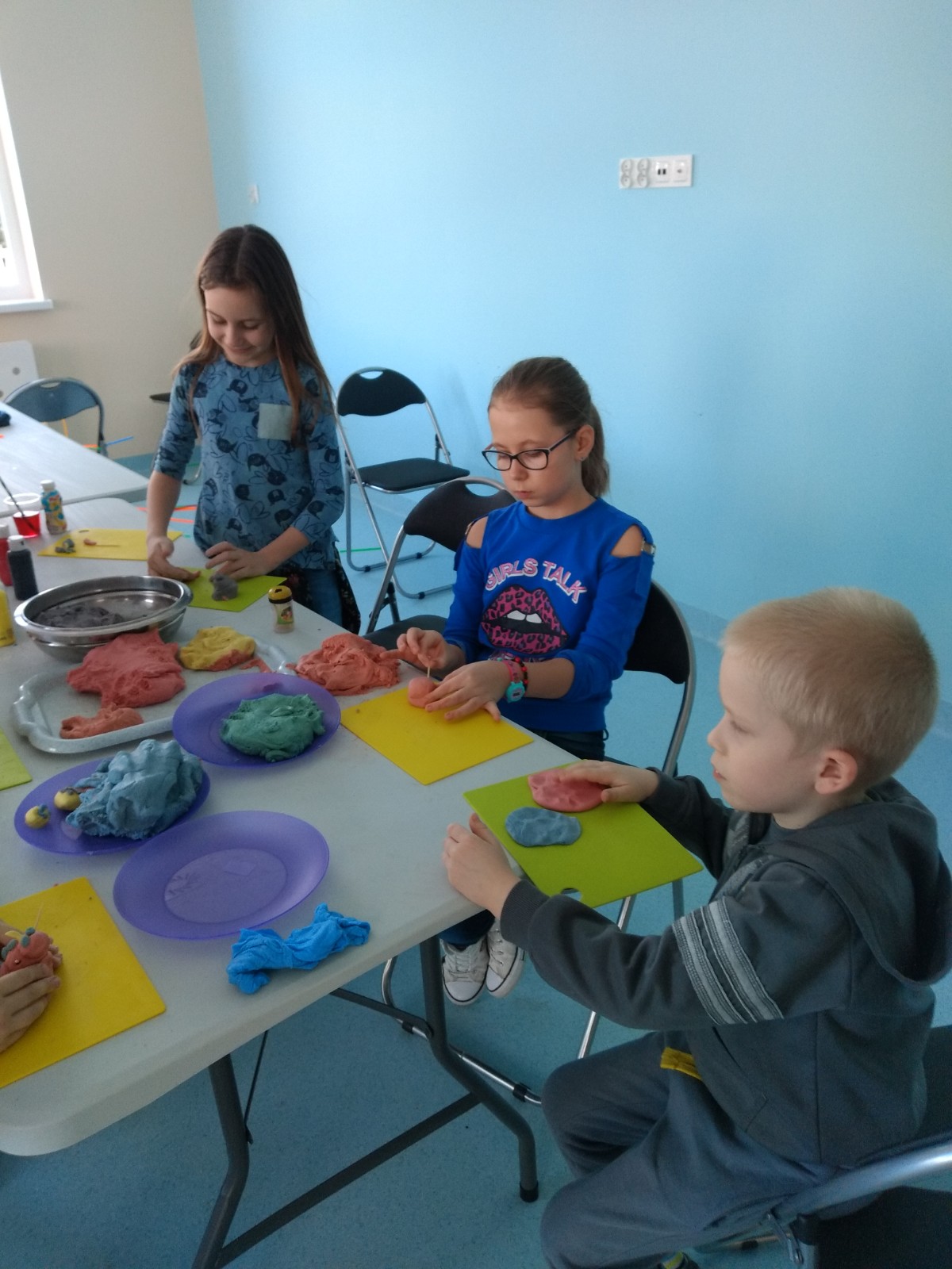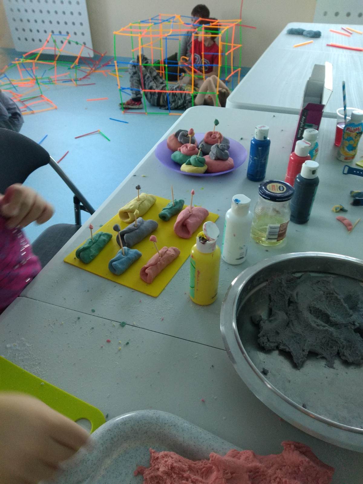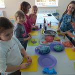 W naszej świetlicy Tuchomiu nie ma nudy! Pani Zuzia ciągle wymyśla jakieś ciekawe zajęcia. Ostatnio bawiliśmy się kolorową masą solną, tworząc z niej różne formy.