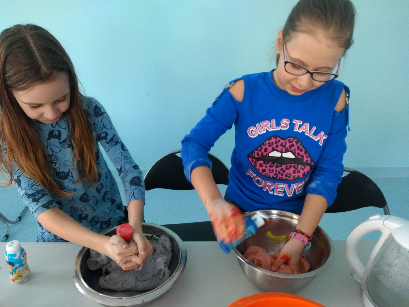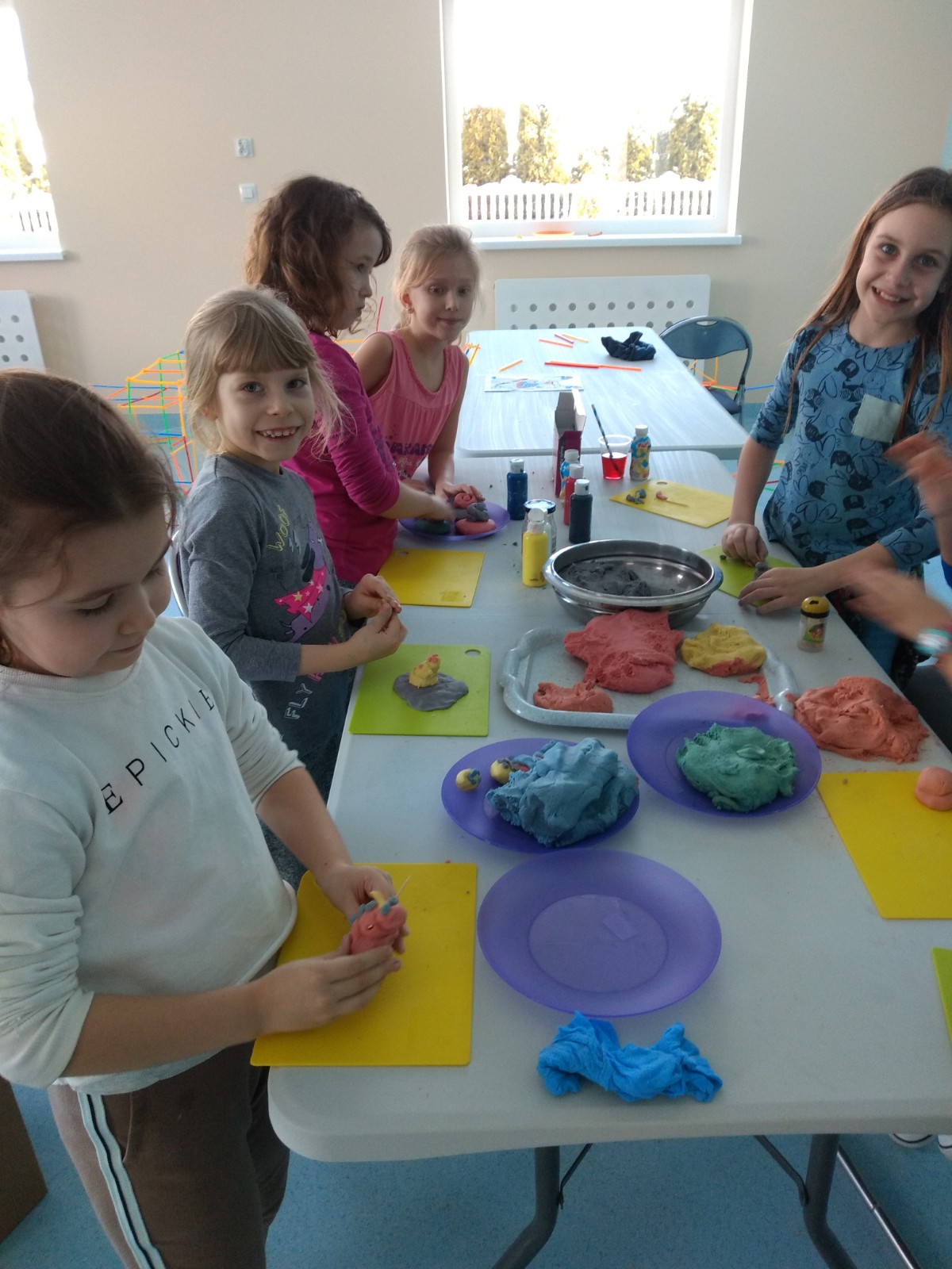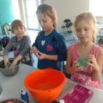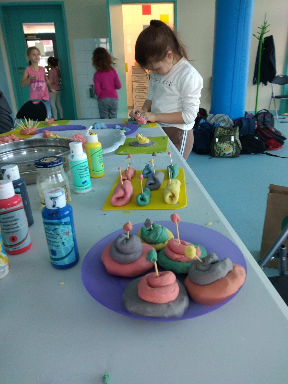W naszej świetlicy Tuchomiu nie ma nudy! Pani Zuzia ciągle wymyśla jakieś ciekawe zajęcia. Ostatnio bawiliśmy się kolorową masą solną, tworząc z niej różne formy.