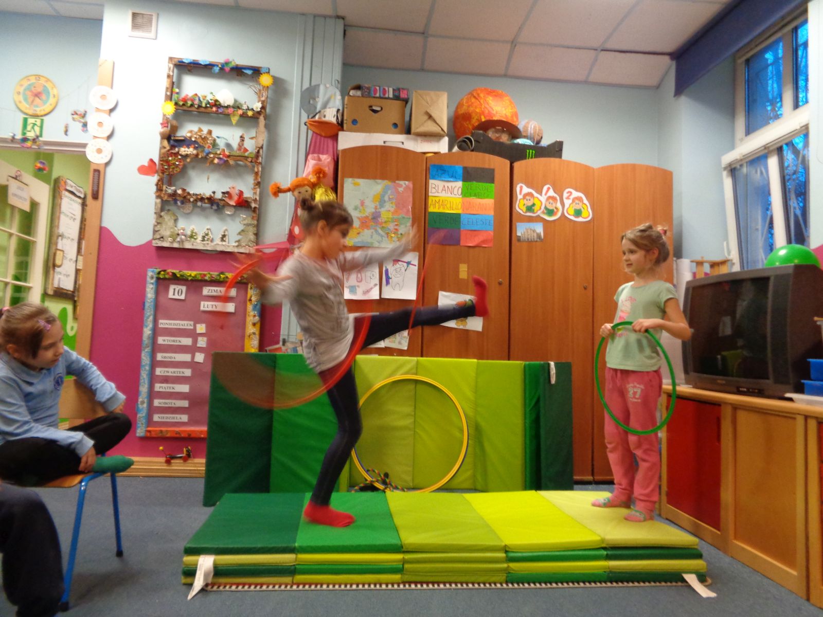 Dzieciaki z „Anielskiej Krainy” na zajęciach przygotowały cyrkowe pokazy. Występowały tancerki, akrobaci, żonglerze, była tresura zwierząt oraz prezentacja różnych innych ciekawych sprawności. A jak to w Cyrku… nie mogło zabraknąć klauna i salw śmiechu 🙂