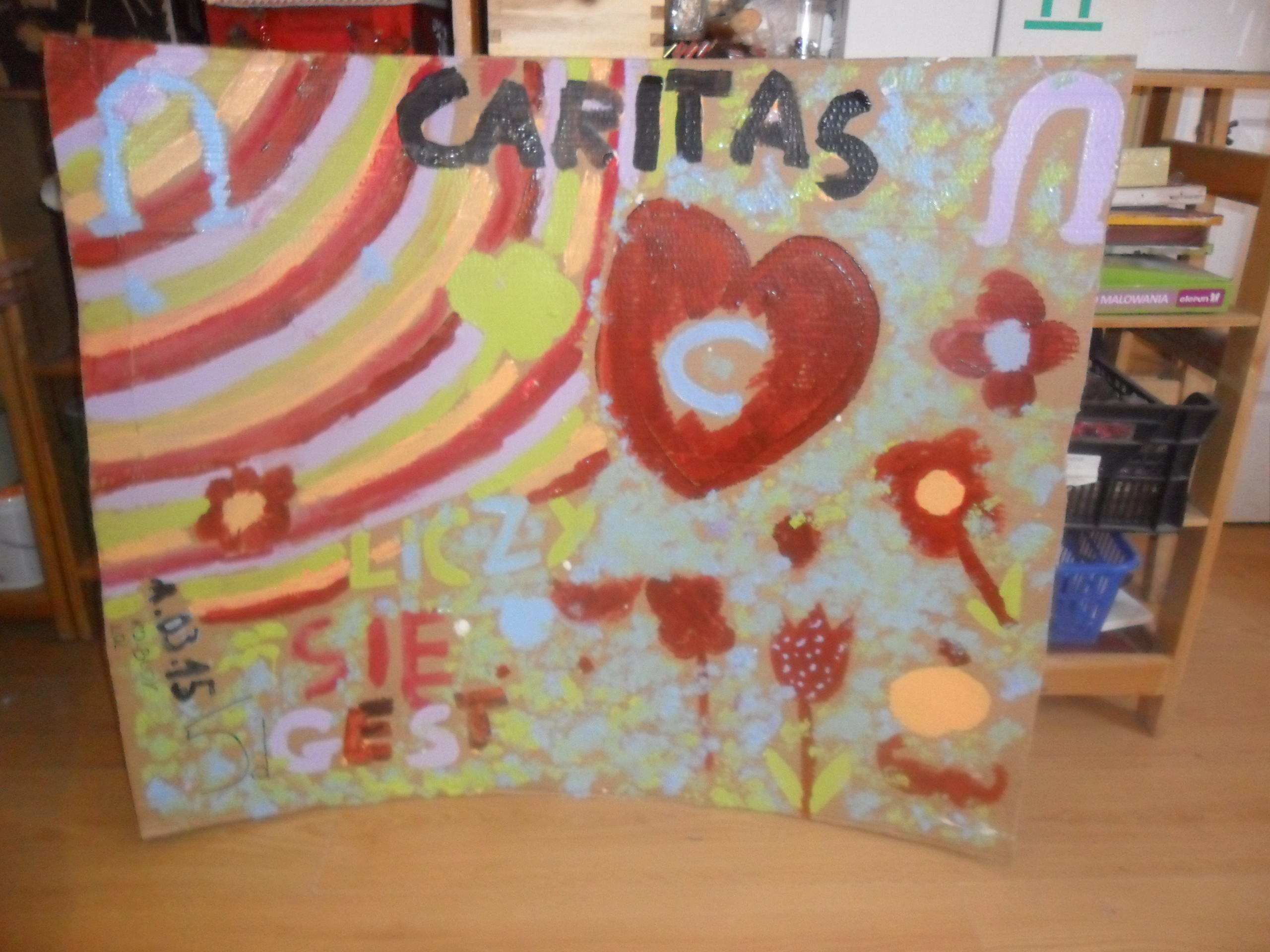 W minionym tygodniu placówkę w Łapinie odwiedziły dzieci z kl. V ze szkoły w Kolbudach. Tematem przewodnim spotkania była działalność Caritas. Najpierw była zabawa w „burze mózgu” , podczas której dzieci podawały hasła kojarzące się z działalnością Caritas. Uczniowie ogromnie nas zaskoczyli bo podczas zabawy padały takie hasła jak: pomoc, niepełnosprawność, bieda, modlitwa, przyjaźń, wakacje, chleb itp. Po zabawie opowiedzieliśmy czym zajmuje się Caritas Gdańska, która prowadzi m.in. warsztat w Łapinie. Potem odbyły się warsztaty plastyczne, podczas których powstały plakaty o Caritas.