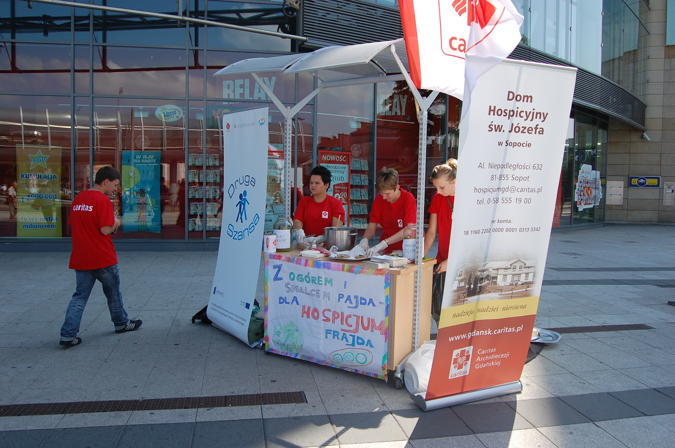W miniony czwartek uczestnicy DRUGIEJ SZANSY GDAŃSKA zrealizowali odważny pomysł przyjścia z pomocą chorym dzięki życzliwości i otwartości serca innych. By to było możliwe we własnym zakresie – domowym sposobem, bo on najlepszy – przygotowali chleb, smalec i małosolne ogórki. Dzięki życzliwości i pomocy dyrekcji Galerii Bałtyckiej mogli miłym poczęstunkiem obdarzyć osoby wchodzące i wychodzące z centrum sklepowego. Stało się to niejednokrotnie miłym zaskoczeniem dla przechodniów oraz chwilą do nawiązania krótkiej rozmowy z prośbą o wsparcie Domu Hospicyjnego im. Św. Józefa w Sopocie prowadzonego przez nasz Caritas. Były uśmiechy, podziękowania i pochwały za smakowity poczęstunek oraz i dobrowolne datki. Dziękujemy Uczestnikom DRUGIEJ SZANSY gratulujemy odwagi!!! pomysłu oraz Miłości wyrażonej drobnym gestem poprzez wsparcie dzieła troski o cierpiących na choroby nowotworowe.