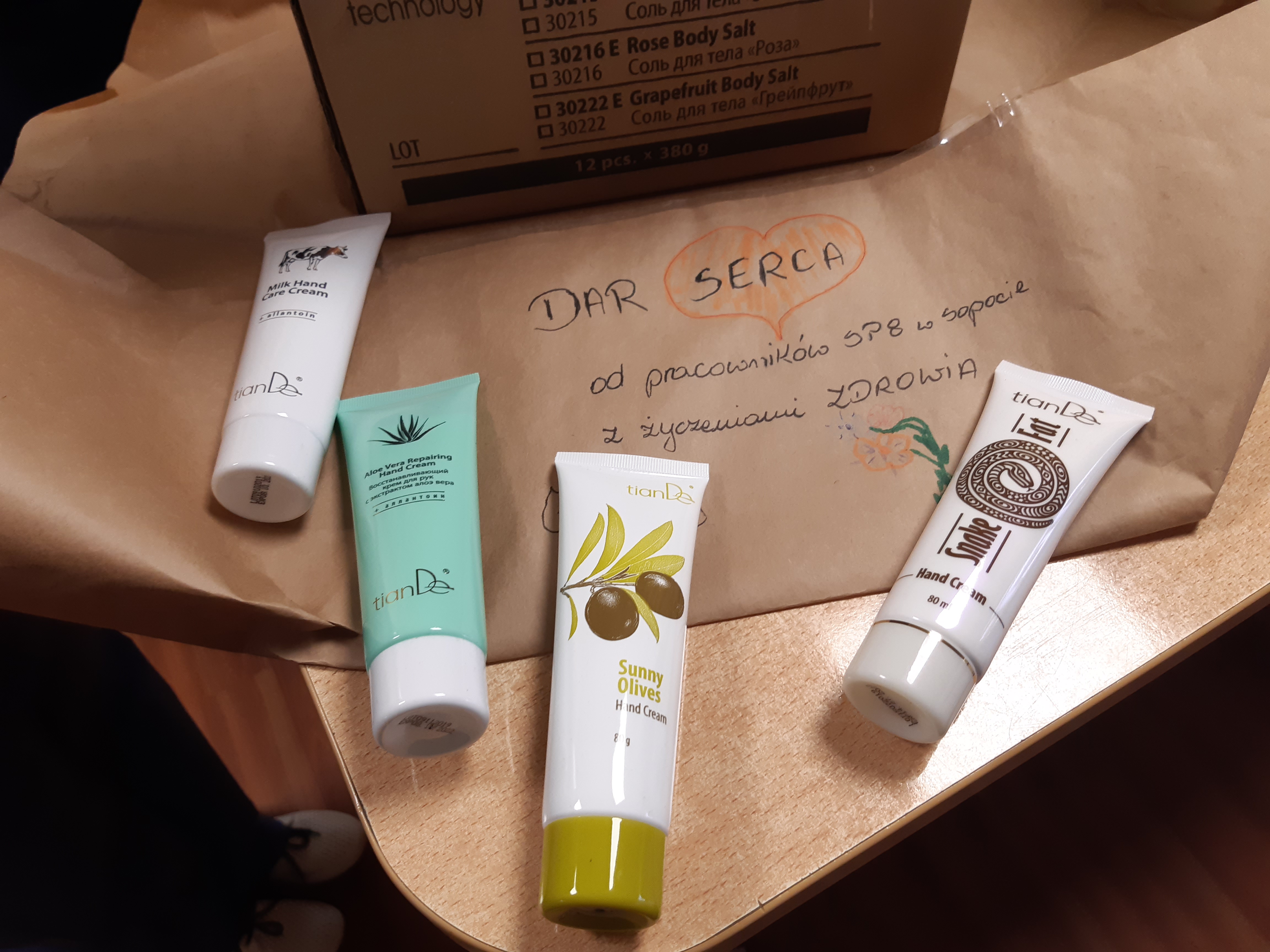 W dniu wczorajszym zostaliśmy miło obdarowani przez Pracowników Szkoły Podstawowej nr 8 w Sopocie. Ten dar serca to kremy i oliwki do pielęgnacji naszych podopiecznych. Wzruszyliśmy się pamięcią o nas, troską i wsparciem. Dziękujemy Wam niezmiernie.