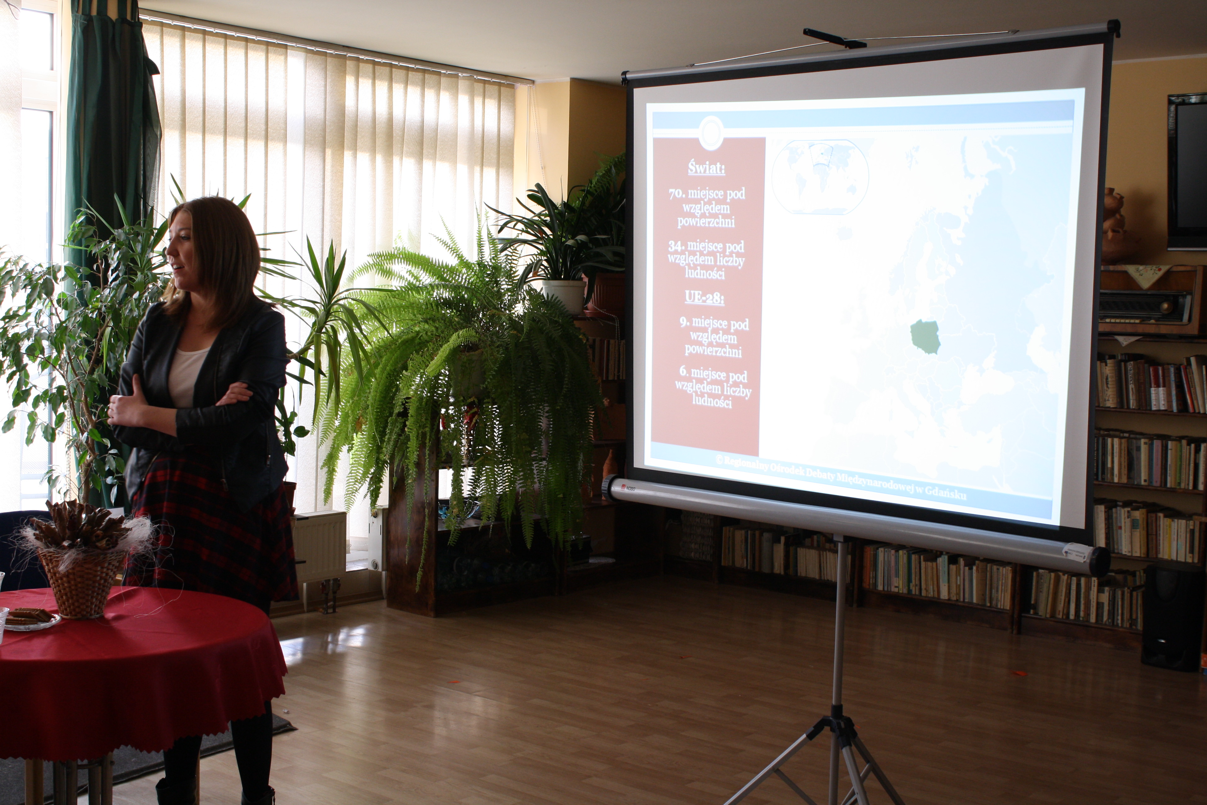 Wykład zaczął się od wiedzy podstawowej, czyli o znaczeniu koloru flagi, o języku polskim,  o tym jak wypadamy w świecie – tu pojawił się krótki, zabawny filmik Ambasady Amerykańskiej, pokazujący trudności w wypowiadaniu niektórych słów, zdań, w języku polskim, przez obcokrajowców. O tym, że na ogół kojarzymy się pozytywnie, jako dobry partner ekonomiczny, jako kraj stabilny, gdyż ominął nas kryzys, że jesteśmy gościnni, ale też mało się uśmiechamy i wiecznie marudzimy. Wyjaśniono dlaczego tak się dzieje, w większości negatywnych przypadków, są to  stereotypy, które powstają poprzez fałszywy obraz kreowany przez jednostki. Ludzie mają tendencje do uogólniania pewnych zachowań.