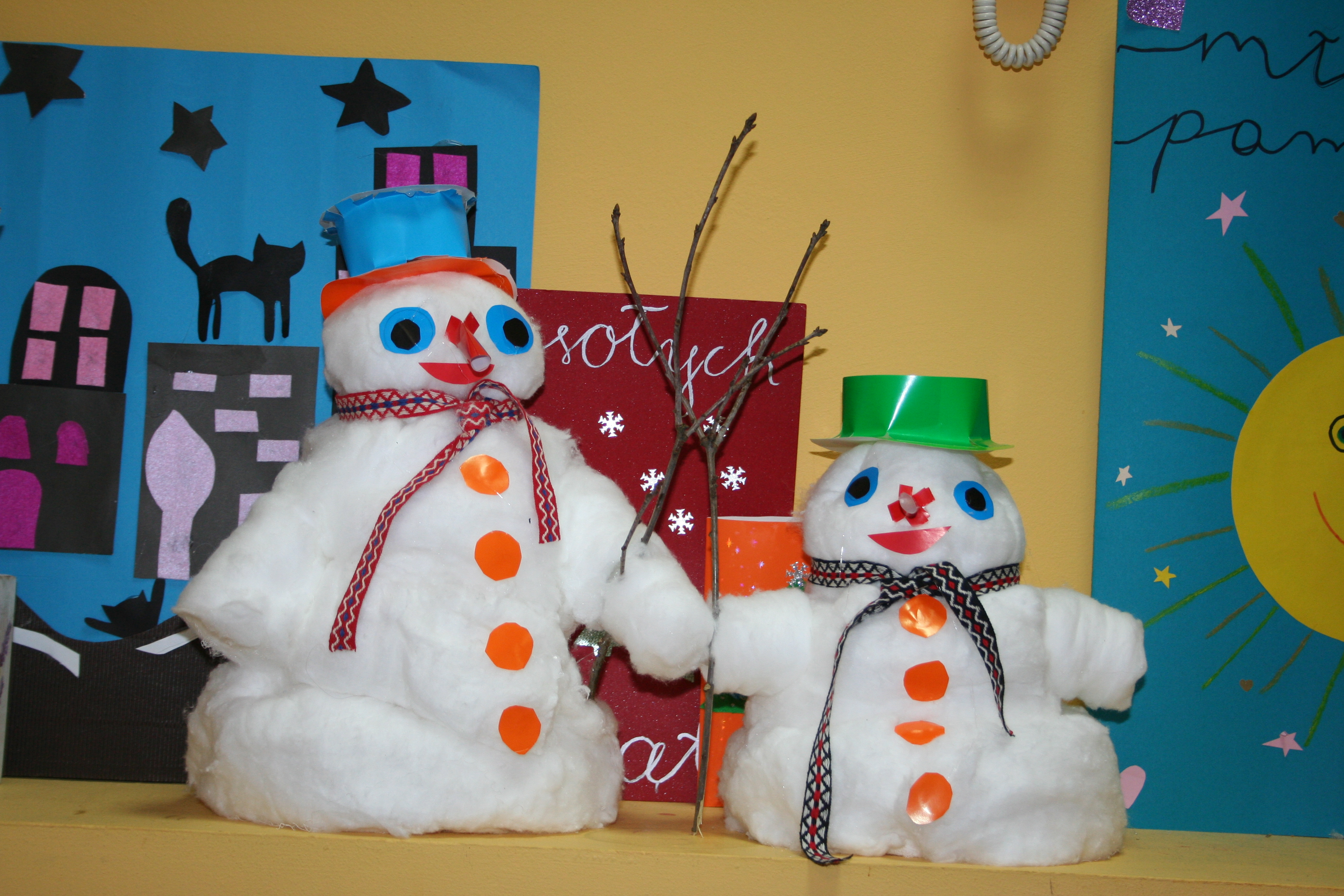 Wczoraj (30.01) podczas warsztatów plastycznych prowadzonych przez Panią Dorotę i Panią Hanię, z naszych rąk wyszły cudowne, białe, zimowe bałwany. Każdy dopracowany do perfekcji w eleganckim nakryciu głowy – cylindrze i nawet z gałązką w ręku. Teraz goszczą na naszym korytarzu, pięknie go sobą przyozdabiając.