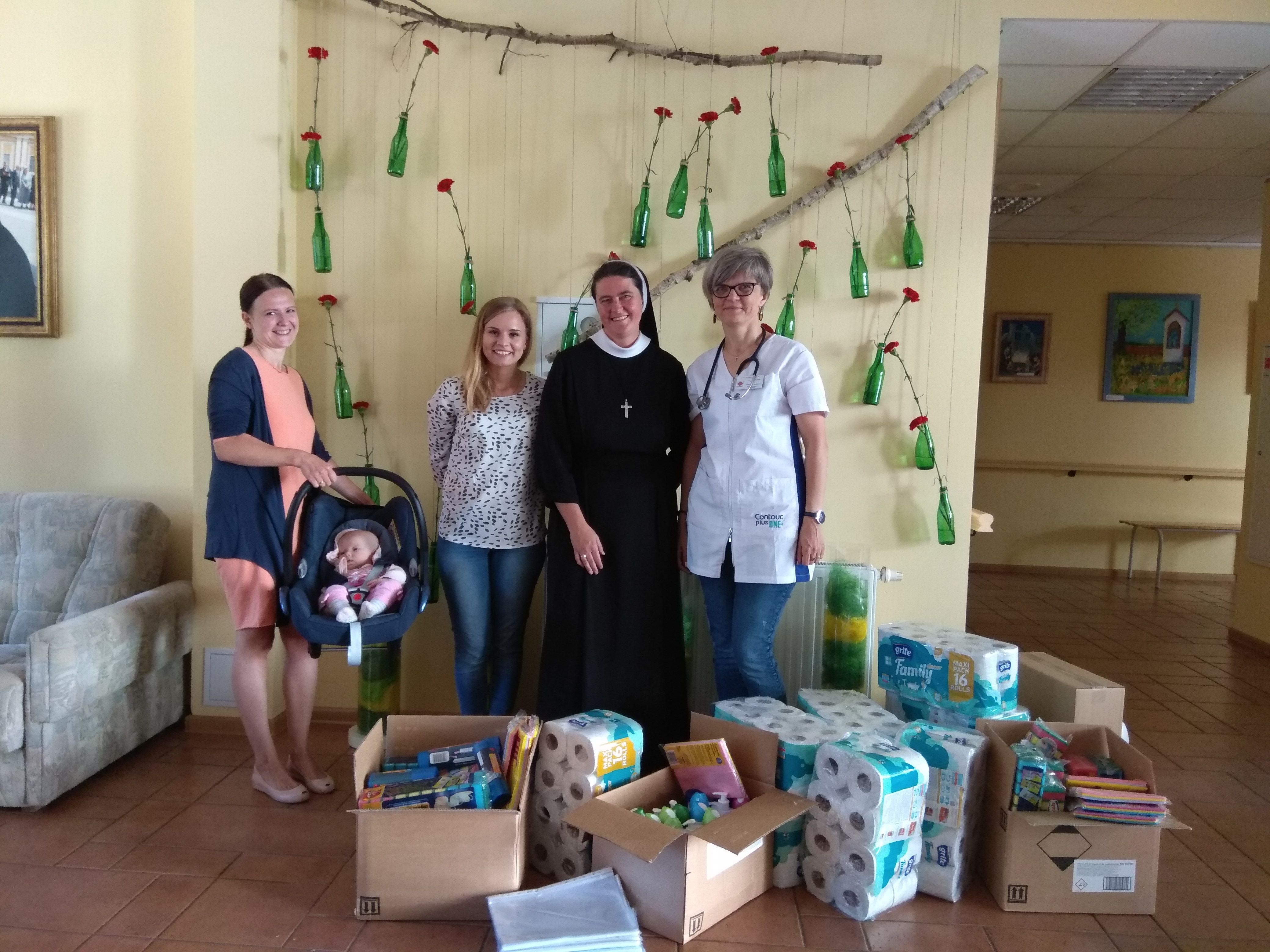 Piękne dary… ściereczki, gąbki, papier toaletowy, odświeżacze powietrza, balsamy i inne bardzo potrzebne rzeczy w dniu dzisiejszym przywiozły nam trzy przedstawicielki z przedszkola im. Świętej Rodziny przy Parafii NMP w Gdyni. Tę bardzo efektowną zbiórkę dla naszych podopiecznych zorganizowały Przedszkolaki wraz z Rodzicami. Za ten piękny gest i dar serca pragniemy Wam bardzo gorąco podziękować !