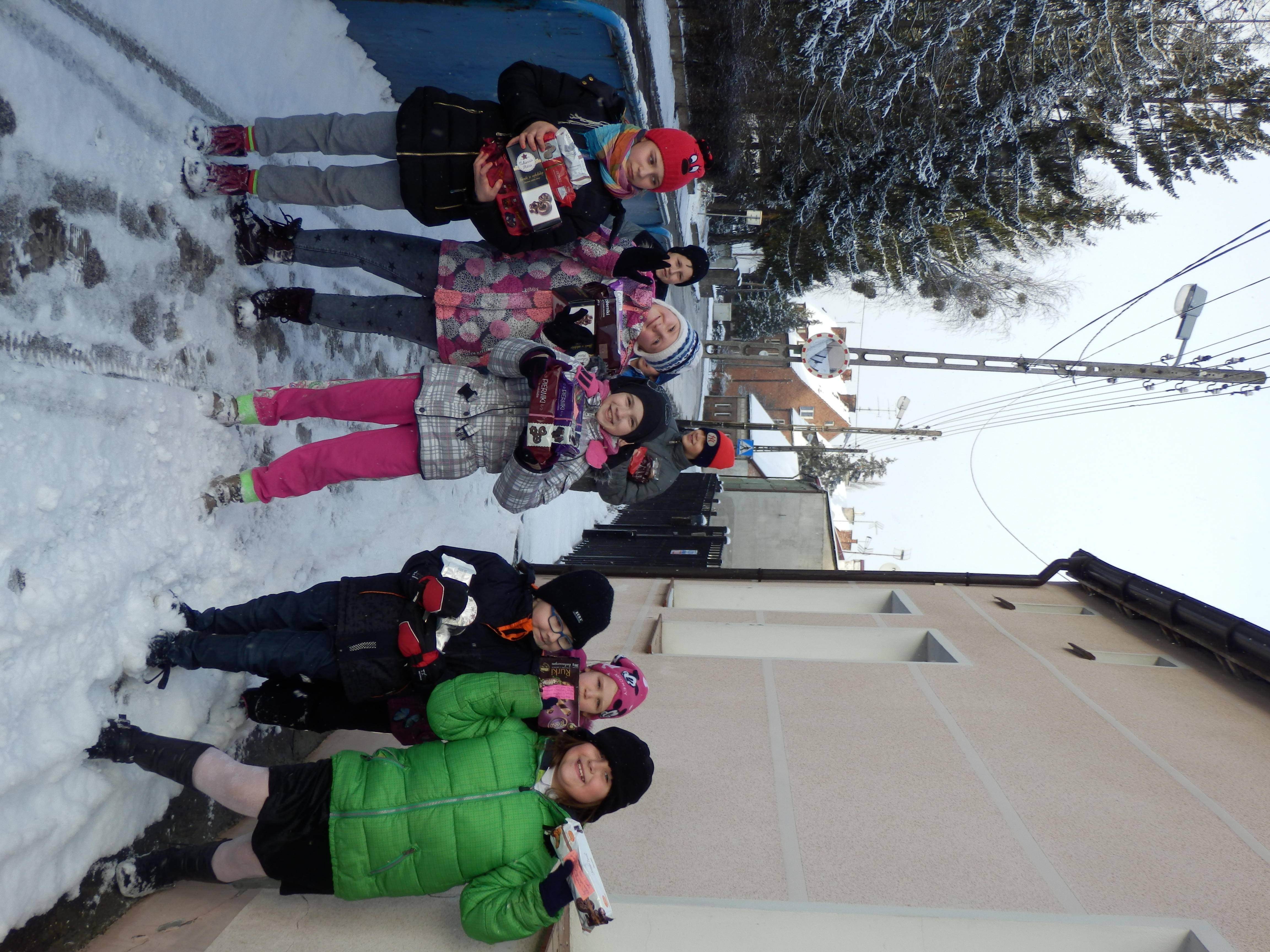 W tym roku tak troszkę inaczej , głównie ze względu na Akcje w która się również włączyliśmy. Dzięki tej akcji dotarliśmy do starszych, samotnych osób z naszej dzielnicy, którym mamy nadzieję sprawiliśmy chociaż troszkę radości zostawioną przez nas pod drzwiami słodką niespodzianką z życzeniami. Ale jak to na akcji, wpadki się zdarzają ! Kiedy wydawało nam się, że dzwonek nie działa , albo ktoś nie słyszy i ponawialiśmy próbę kontaktu. To nagle drzwi się otwierały no wpadaliśmy jak śliwka w kompot. Ale tak szczerze , to warto było, bo mogliśmy na własne oczy przekonać się jakie wywołujemy zdziwienie, niedowierzanie. A dla naszych osobistych, prywatnych no i oczywiście najukochańszych Babć i Dziadków w tym roku przygotowaliśmy własnoręcznie wykonane kwiatki, które nauczyła nas wykonywać nasza Ciocia Natalia z Białorusi.