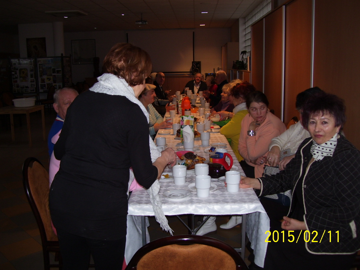 Po mszy uczestnicy zostali zaproszenie do sali przy kościele na słodki poczęstunek. Było miło i serdecznie, były wspomnienia i ciekawe rozmowy przy kawie i ciastkach.