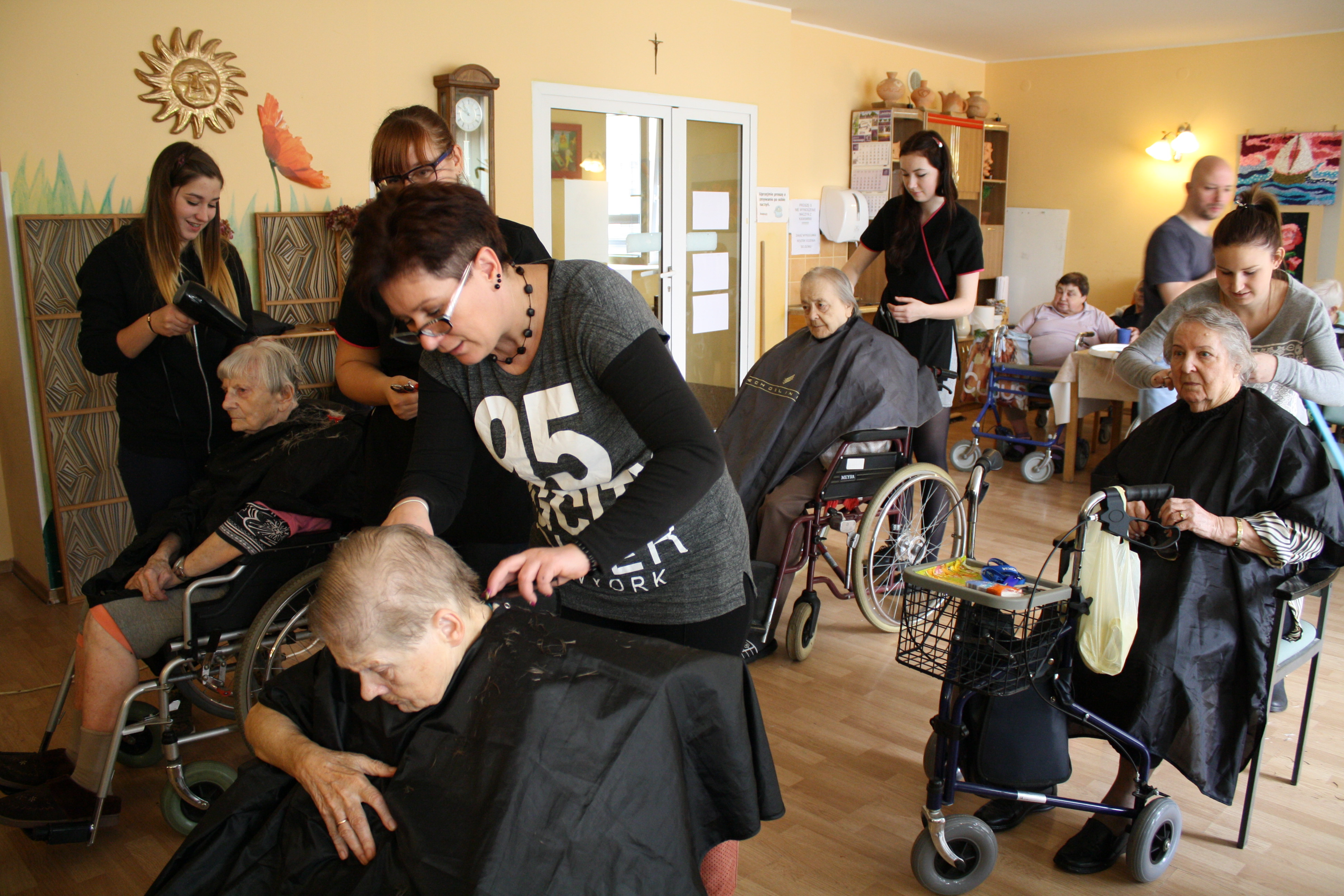 Dziękujemy serdecznie Pani Małgorzacie Rumińskiej oraz uczennicom z klasy II G reprezentującym Zespół Szkół Zawodowych na ulicy Dąbrowszczaków, za fachową pomoc w zadbaniu o fryzury naszych mieszkanek i mieszkańców. Daliście naszym podopiecznym radość i uśmiech