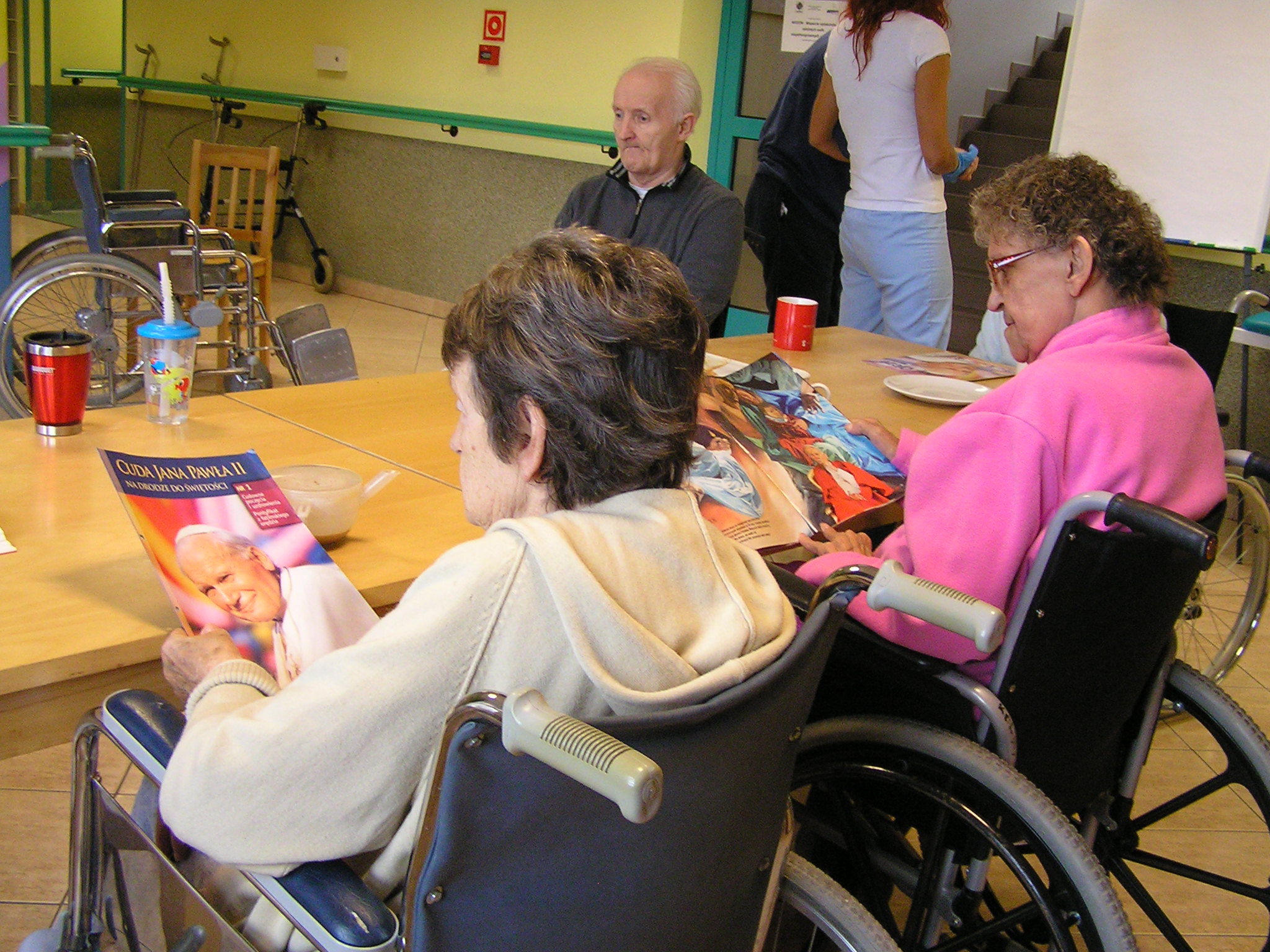 Wśród pacjentów i uczestników WTZ wielu jest takich, którzy pamiętają jego pielgrzymki do ojczyzny. Obejrzeliśmy także film „Jan Paweł II- człowiek, który zmienił świat” – dokumentujący historię życia wielkiego Polaka i jego wkład w obalenie komunizmu w Europie. Czytaliśmy także o cudach dokonanych przez Jana Pawła II. Z okazji Dnia Papieskiego uczestniczy WTZ przygotowali słodki poczęstunek. Jan Paweł II, Duchowy Ojciec, daje nam życiową nadzieję i wzmocnienie ma tym doczesnym świecie, czego dowodem były uśmiechy i łzy wzruszenia na twarzach naszych pacjentów i podopiecznych.