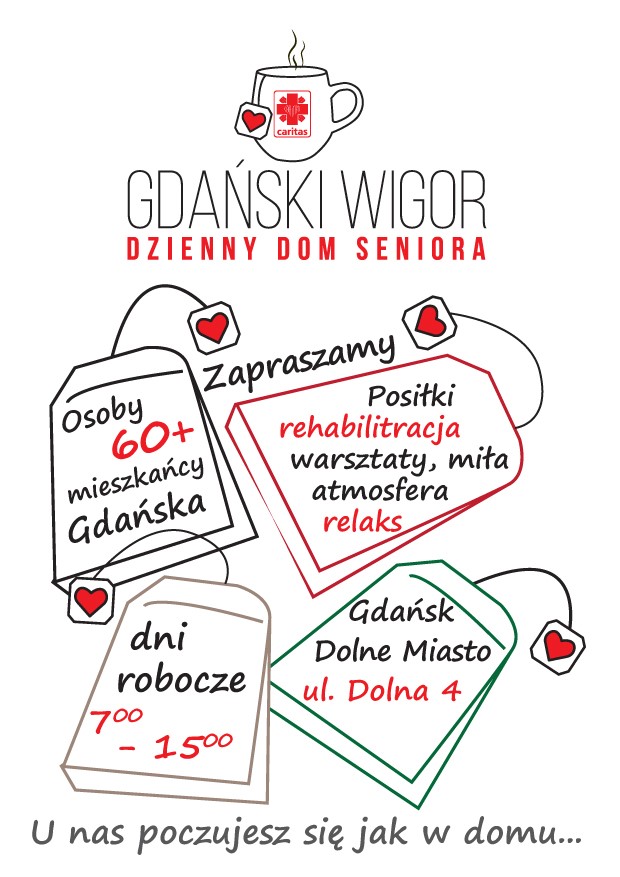 Serdecznie zapraszamy seniorów powyżej 60-tego roku życia z Gdańska do Dziennego Domu Seniora mieszczącego się w Centrum Caritas „Na Dolnej”.