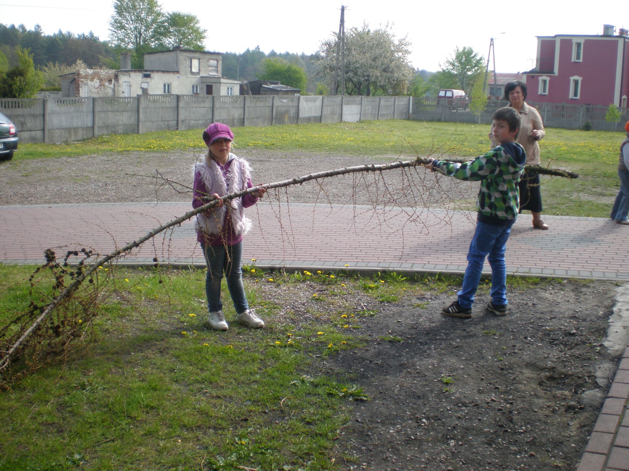 Zajęcia rozpoczęliśmy od pogadanki na ten temat. Następnie dzieci zaopatrzone w rękawiczki i różnego koloru worki sprzątały teren szkolny z zachowaniem zasad segregacji odpadów. Zdarzało się, że były to śmieci, które one same rzuciły bezmyślnie na ziemię. Była to więc dla nich dodatkowa lekcja wychowawcza – szacunku dla pracy pani sprzątaczki, poczucia estetyki i dobrego wychowania.