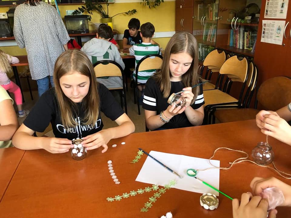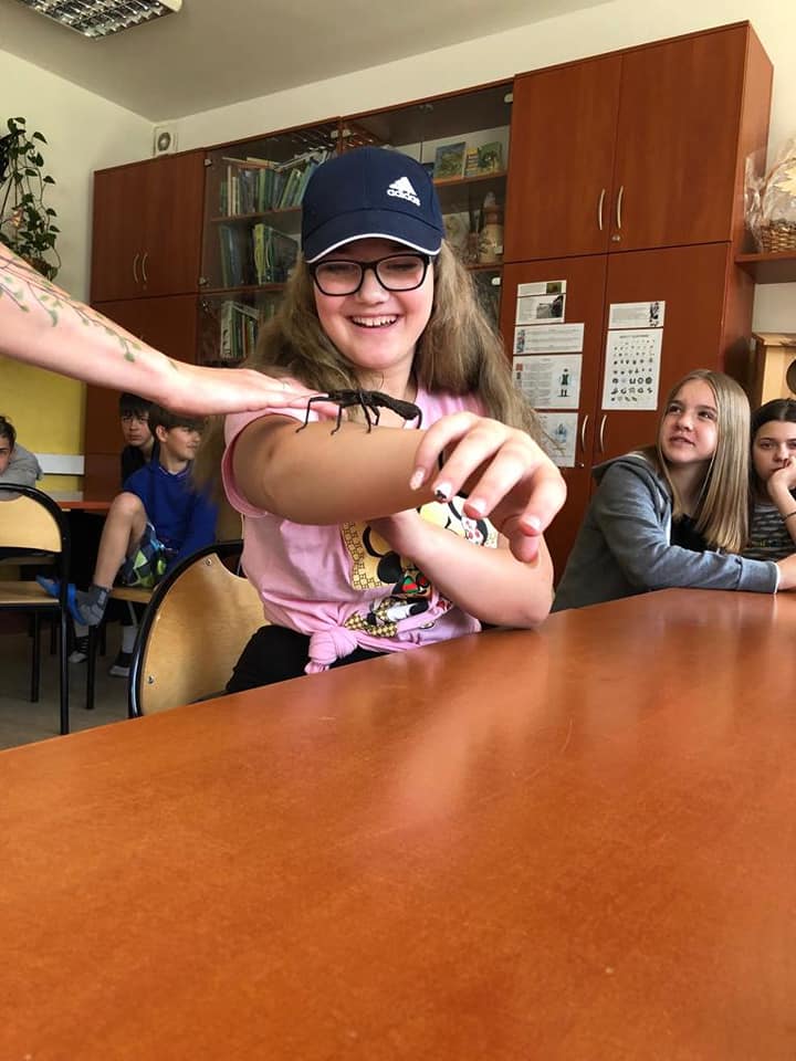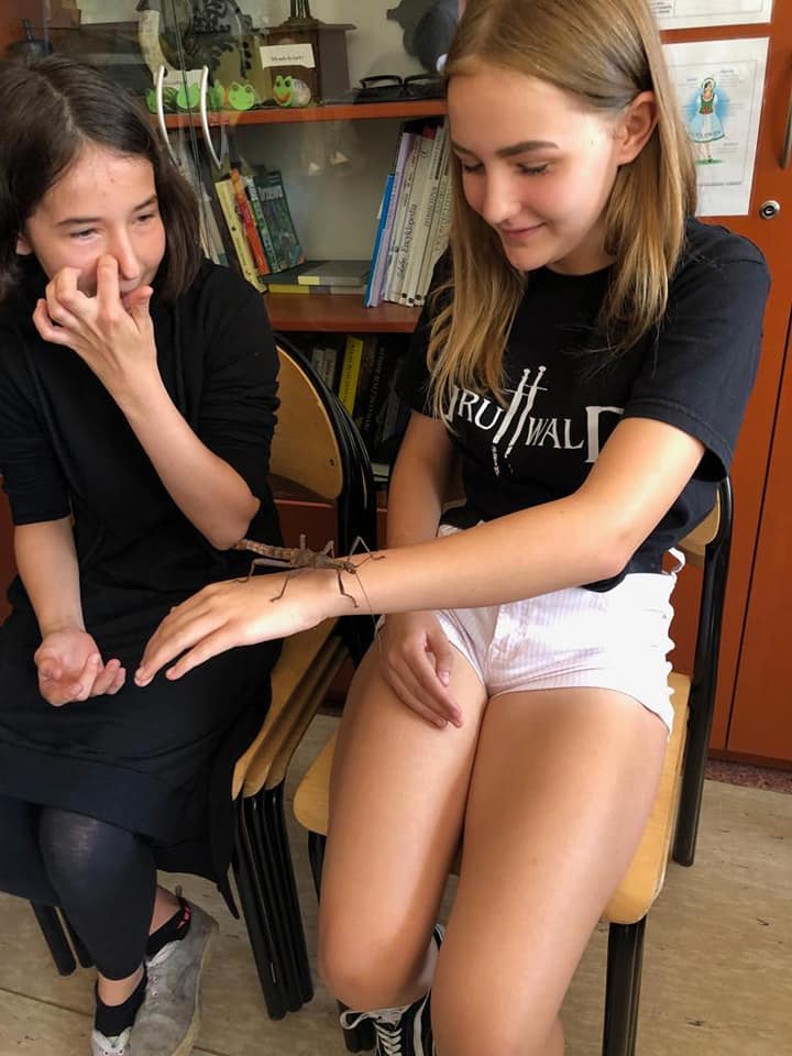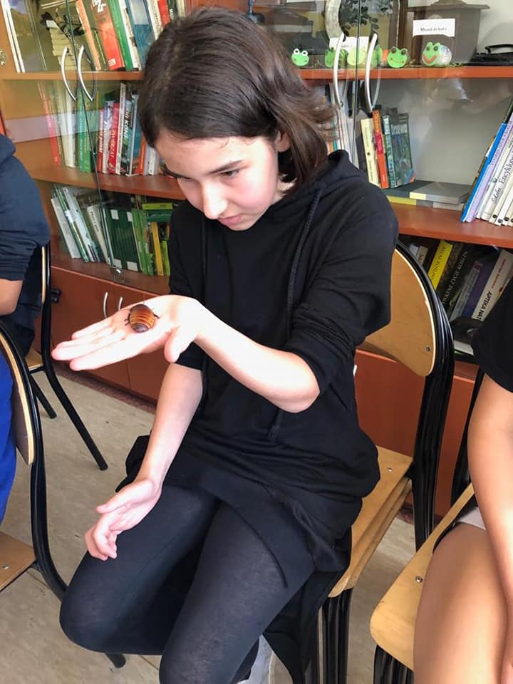 Po powrocie czekały na nas zajęcia pt. „Przytul karalucha, czyli jak polubić owady”. Mieliśmy okazję zobaczyć z bliska takie cuuuuudowne żyjątka jak Straszyk filipinski , Ślimak afrykanski, Karaczan madagaskarski. To było wspaniałe przeżycie! Nie zabrakło zajęć artystycznych- robiliśmy lampiony fluorescencyjne. Wyszły nam przepięknie! Były dziś również zabawy bankami mydlanymi! A wieczorem ognisko! Miło jest razem posiedzieć przy ciepełku.