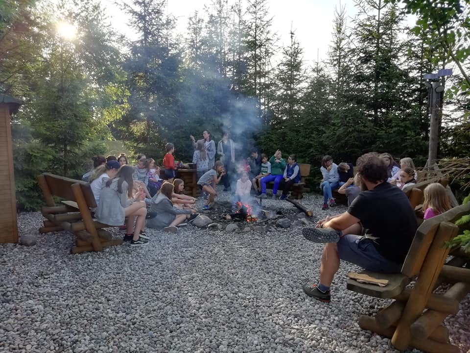 Zwiedzaliśmy malowniczą okolicę. Mieliśmy ciekawe zajęcia edukacyjne na temat wilczej watahy. Ciekawostkami z zajęć z pewnością podzielimy się z Wami drodzy przyjaciele po powrocie do domu. Oczywiście nie mogło zabraknąć rozgrywek sportowych 🙂 aż żal byłoby nie skorzystać z tak wspaniałych boisk!! 🙂 no i oczywiście zajęcia artystyczne. Nasze pokoje mają nazwy i piękne plakaty zdobią nasze drzwi!