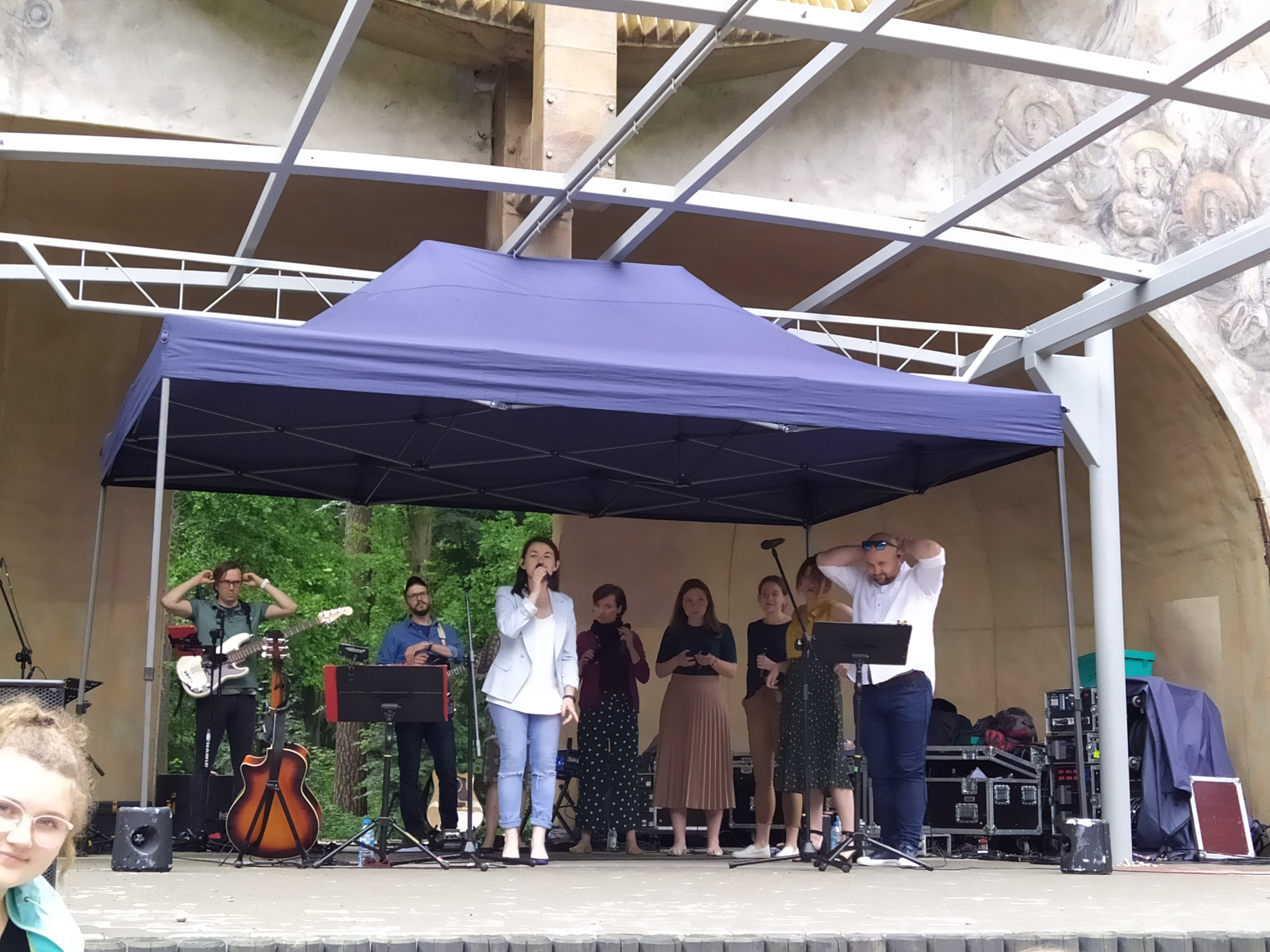 Później udaliśmy się na polanę obok kościoła, gdzie czekał już na nas zespół niemaGotu, który umilił nam czas swoim śpiewem.