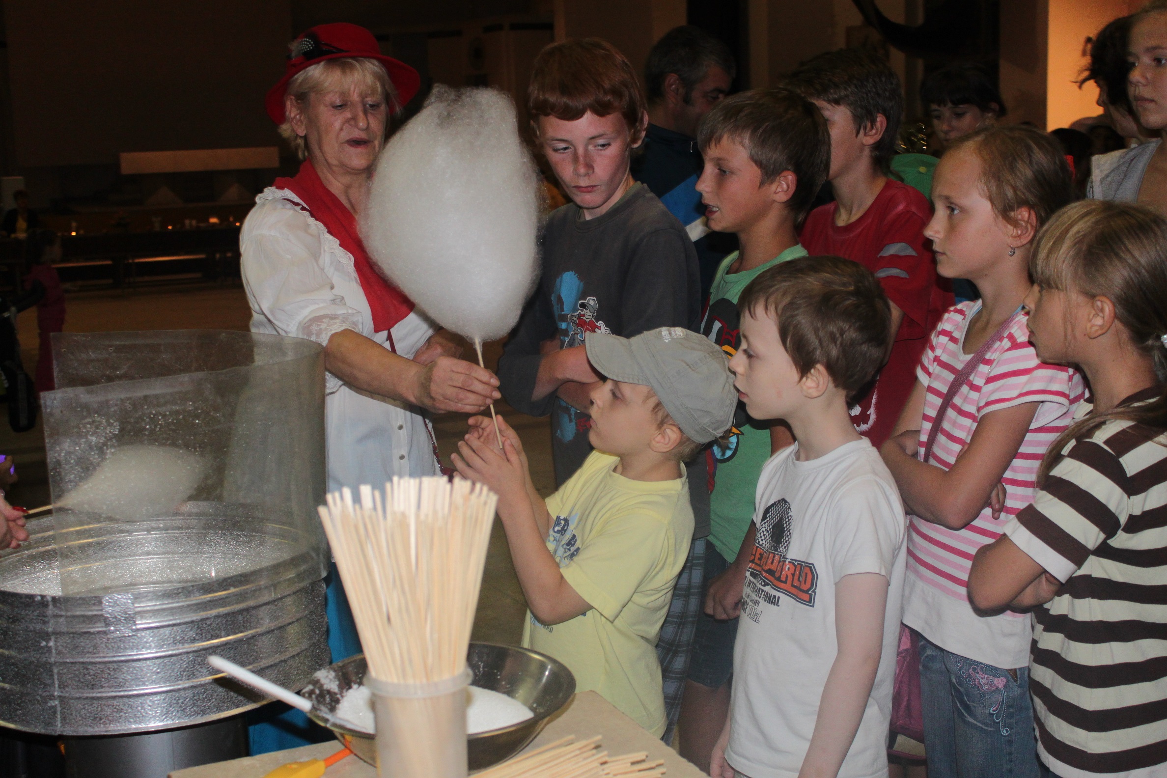 Dzieci początkowo nieśmiałe, później nie można było oderwać od clowna i innych wolontariuszek przebranych w różne stroje z bajek. Dwoiły się one i troiły, żeby wszystkie pyszczki się śmiały. Wszyscy uczestnicy konkursów byli nagradzani gadżetami, które zespół zbierał od dłuższego czasu. Był również słodki poczęstunek dla dzieci i dorosłych. Nasi wolontariusze piekli naleśniki z dżemem i częstowali słodyczami. Największym powodzeniem cieszyła się cukrowa wata, dzięki której nasze pociechy stały się jeszcze słodsze i klejące.