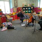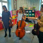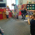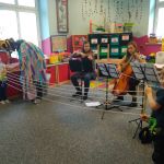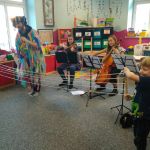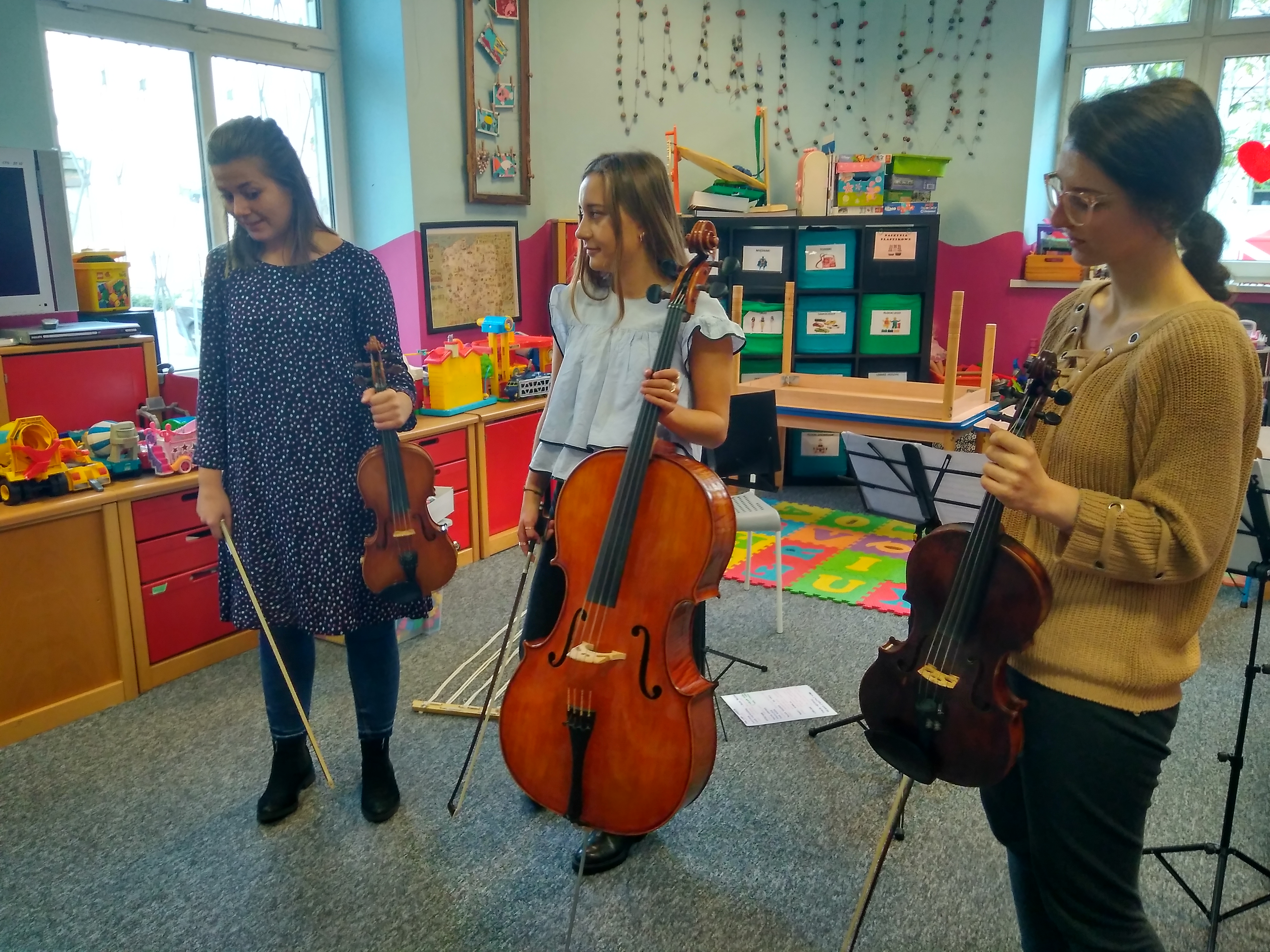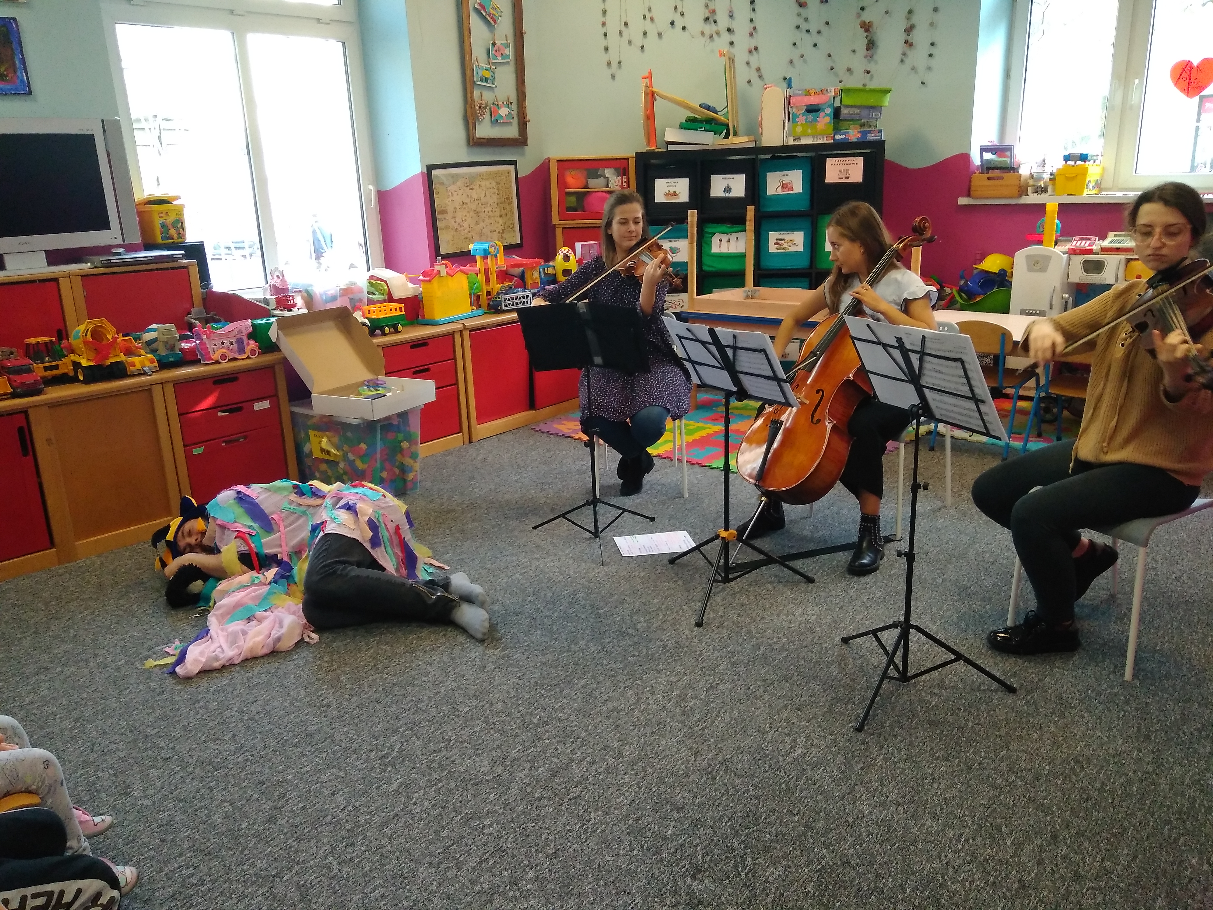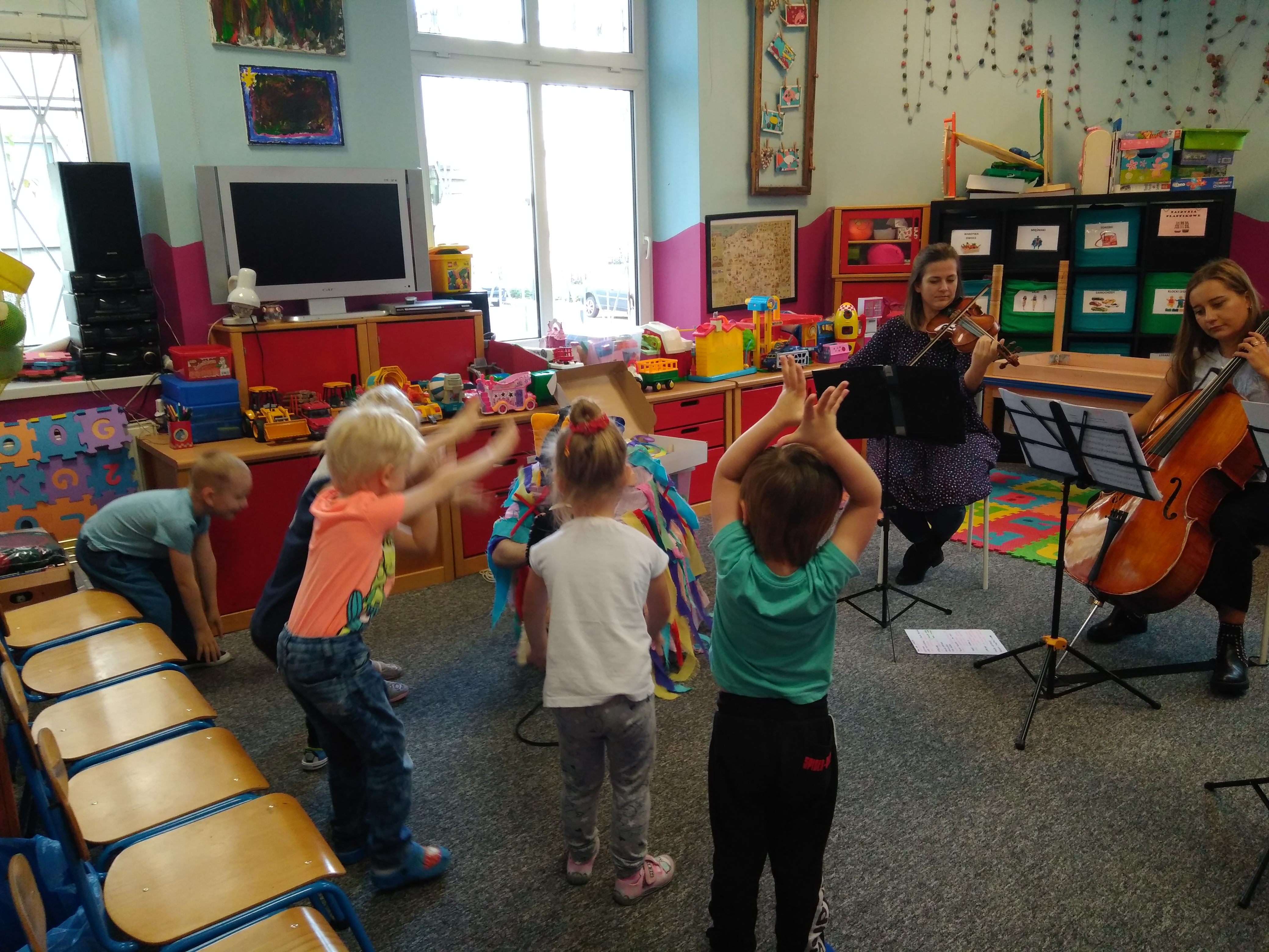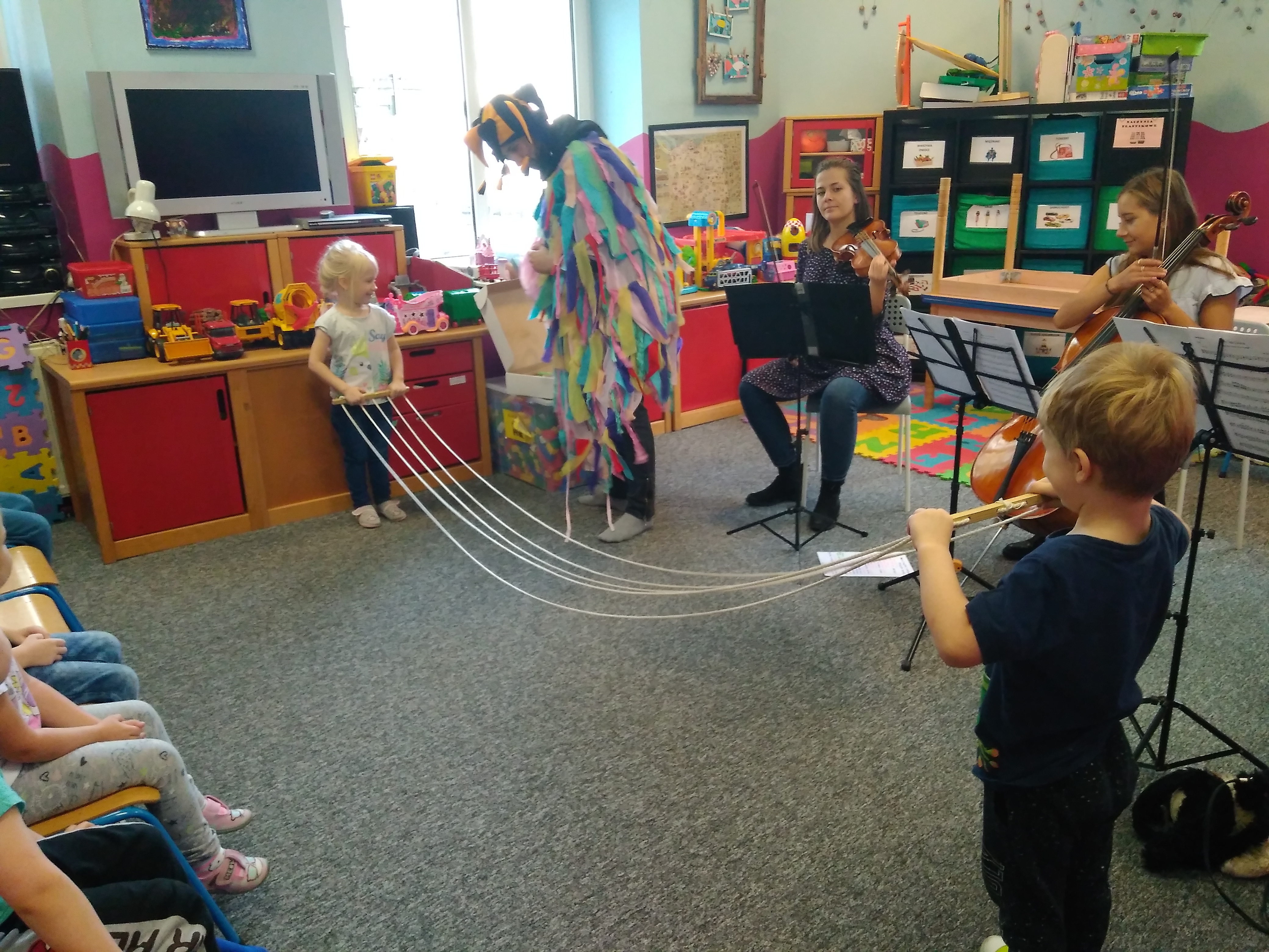 24.10.2019r. po przerwie wakacyjnej odwiedzili nas artyści. Nasza radość była ogromna! 🙂 Tym bardziej, że wyruszyliśmy w podróż z Baśnioludkiem po Krainie Muzyki. Towarzyszyły nam instrumenty smyczkowe: skrzypce, altówka i wiolonczela. Nasze spotkania z muzyką klasyczną nigdy nie są nudne, zawsze świetnie się bawimy, tańczymy i bardzo dużo uczymy. Dziękujemy naszym artystom i już nie możemy się doczekać kolejnego spotkania 🙂