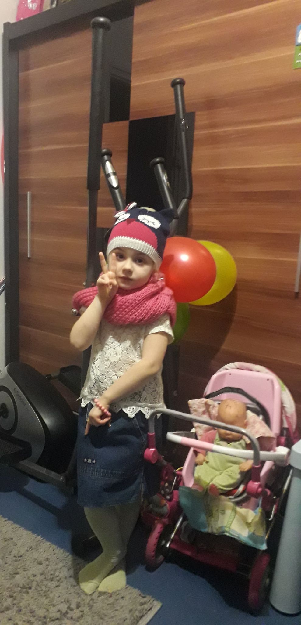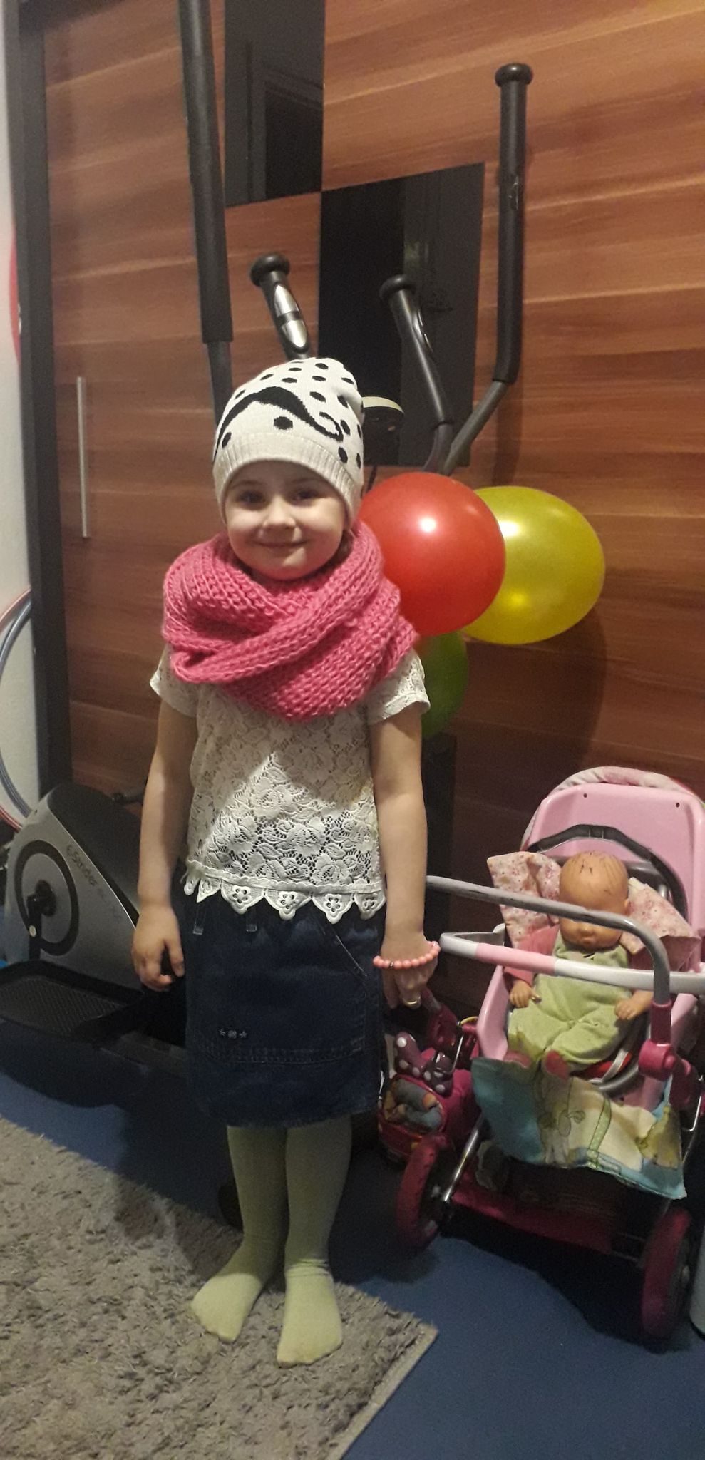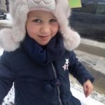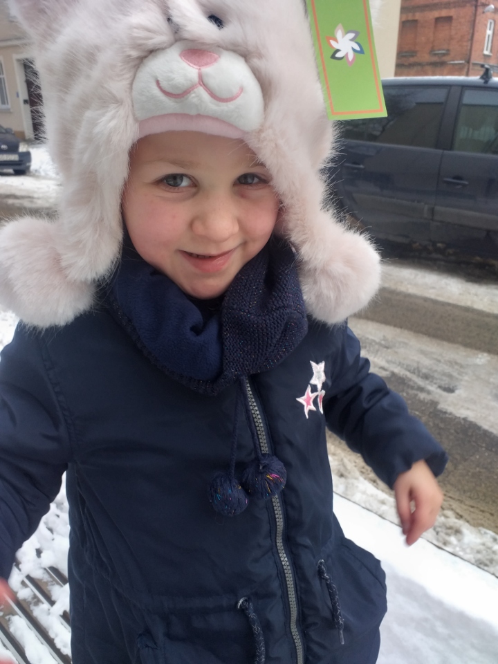 - Uśmiechnięta dziewczynka w ciepłym, zimowy ubraniu.