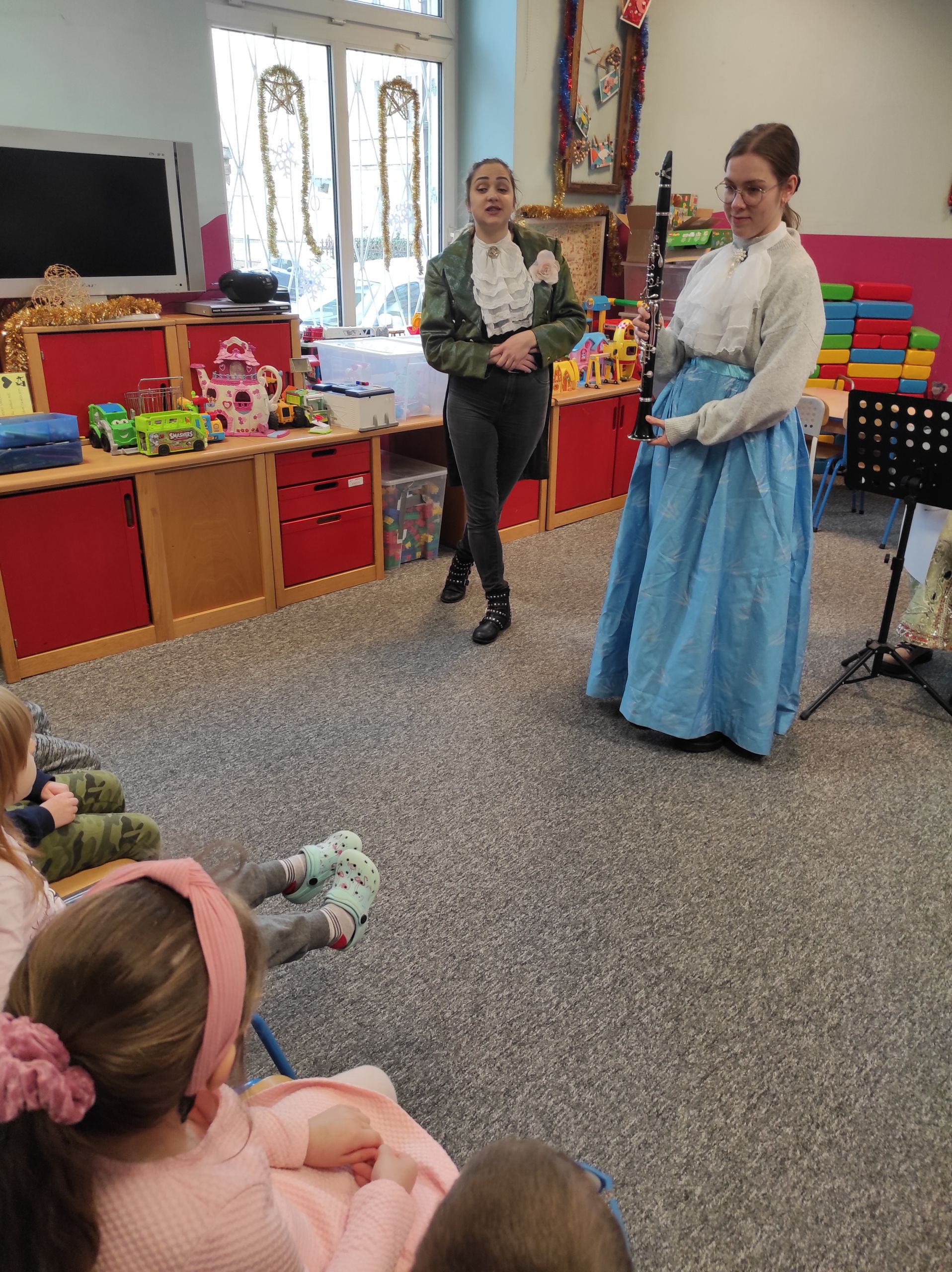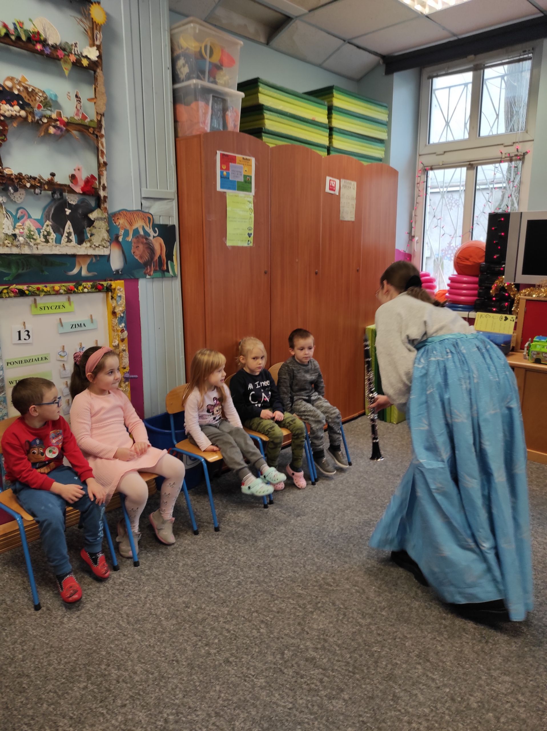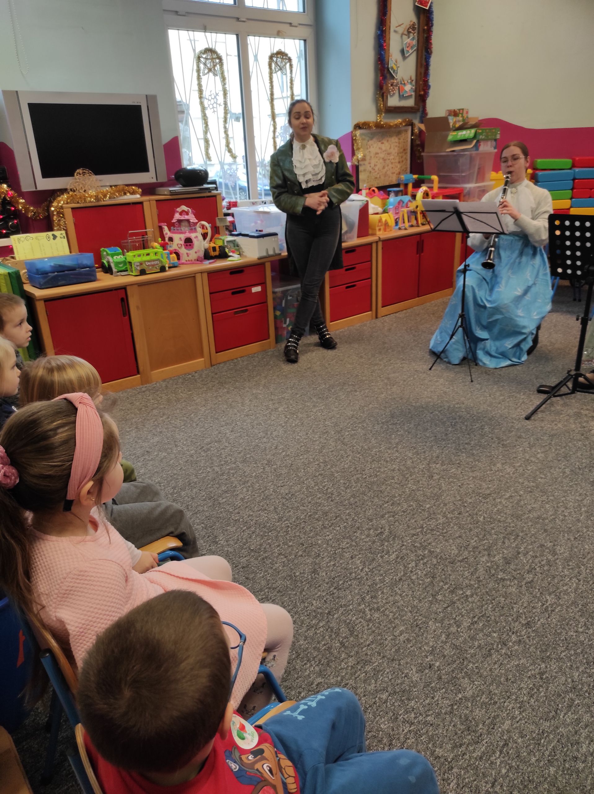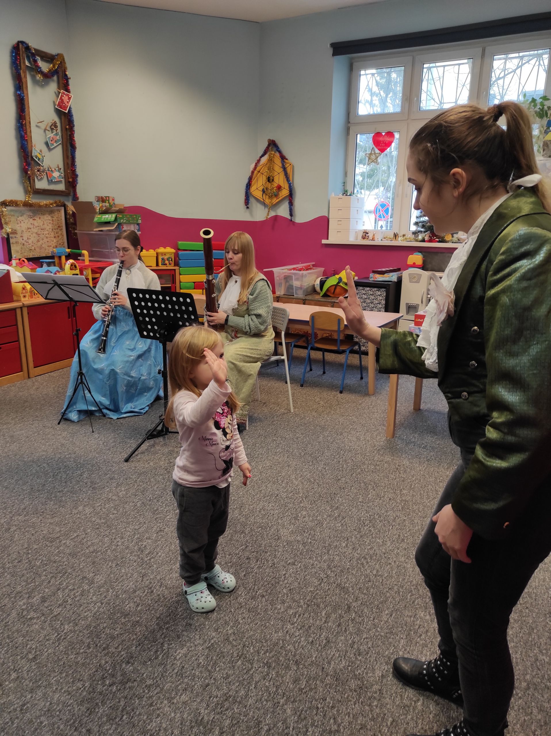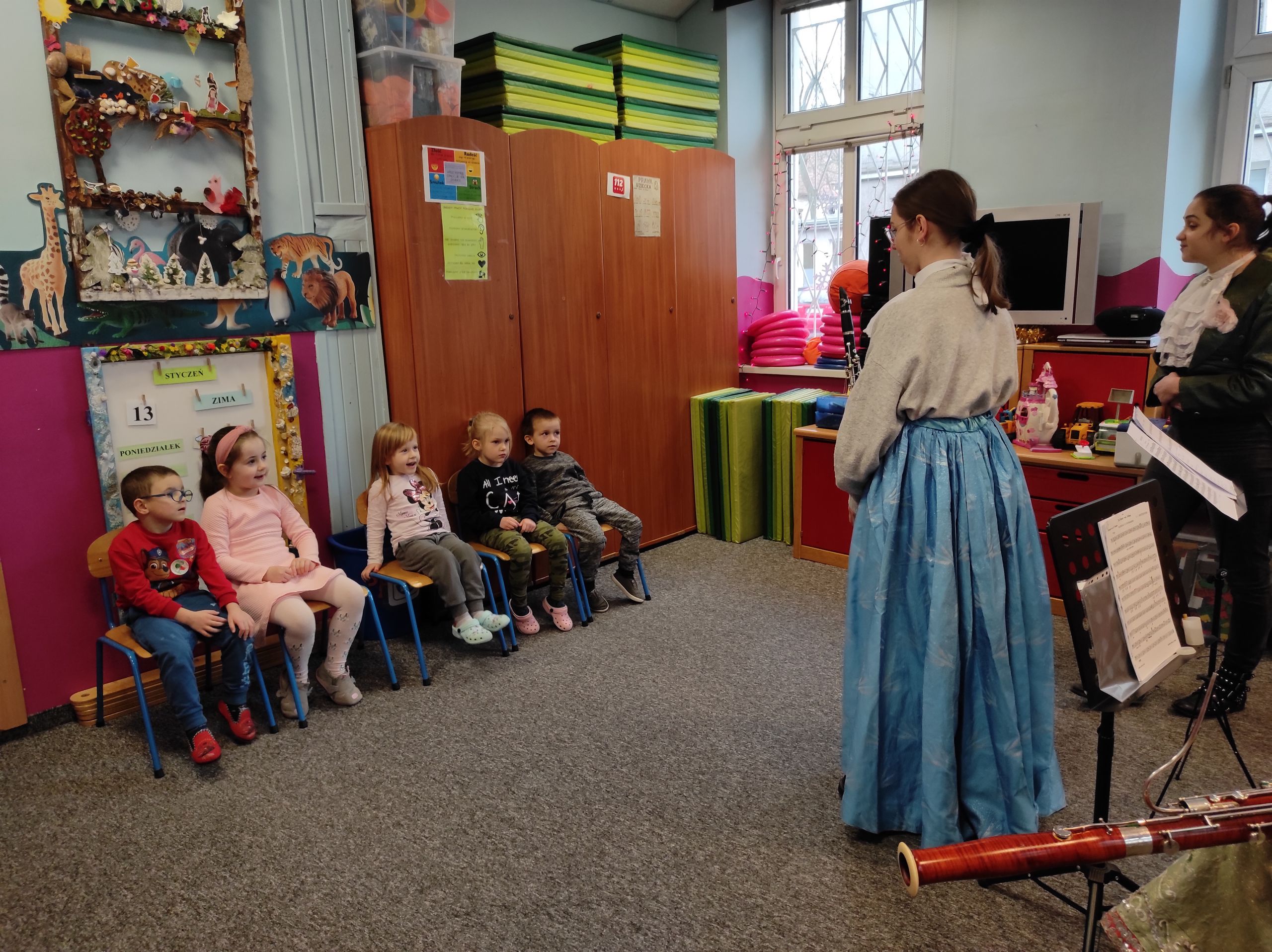 13.01.2022r. ugościliśmy pierwszy raz w tym roku naszych ulubionych artystów z agencji muzycznej ProMusica. Wysłuchaliśmy emocjonującej opowieści, w której nieźle nastraszyła nas czarownica Dysharmonia. Całe szczęście, że bajka skończyła się dobrze, a my, jak zwykle, poznaliśmy nowe instrumenty, wiele pięknych dźwięków i nawet nauczyliśmy się specjalnego tańca – menueta. Dziękujemy za wspaniały koncert i miłe odwiedziny! 🙂