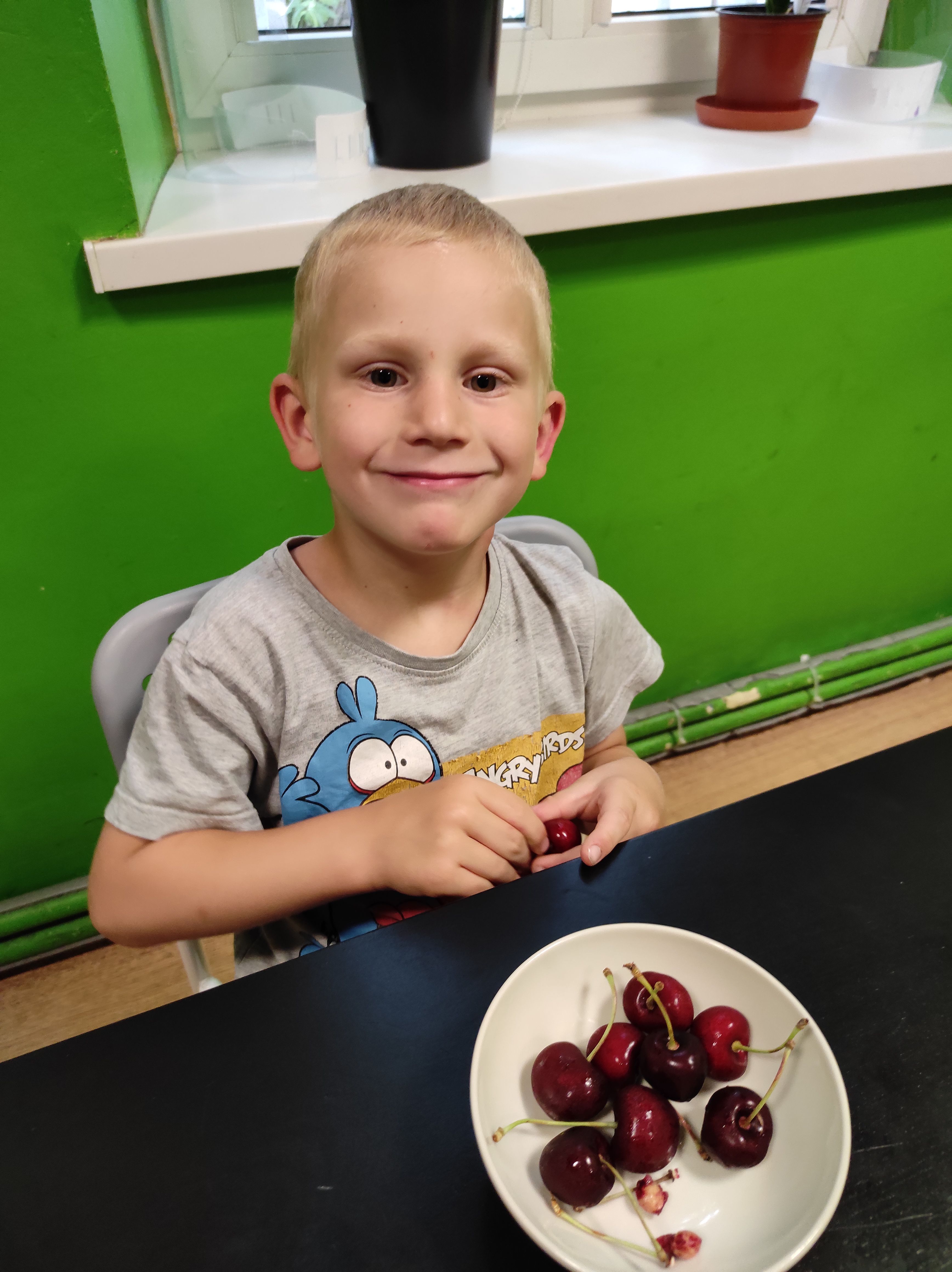 03.07.2020r. nasze dzieciaki zajadały się czereśniami! Nie ma nic lepszego niż słodkie i orzeźwiające owoce w upalny dzień 🙂 Nasze maluchy dowiedziały się jak nazywa się każda część czereśni i czy pestki można jeść. Wszystkie dzieciaki bardzo chętnie zajadały swoje porcje oraz prosiły o dokładki. Dziękujemy za pyszne i zdrowe przekąski fundacji Kulczyk, która wspiera nas w ramach projektu „Żółty Talerz”.