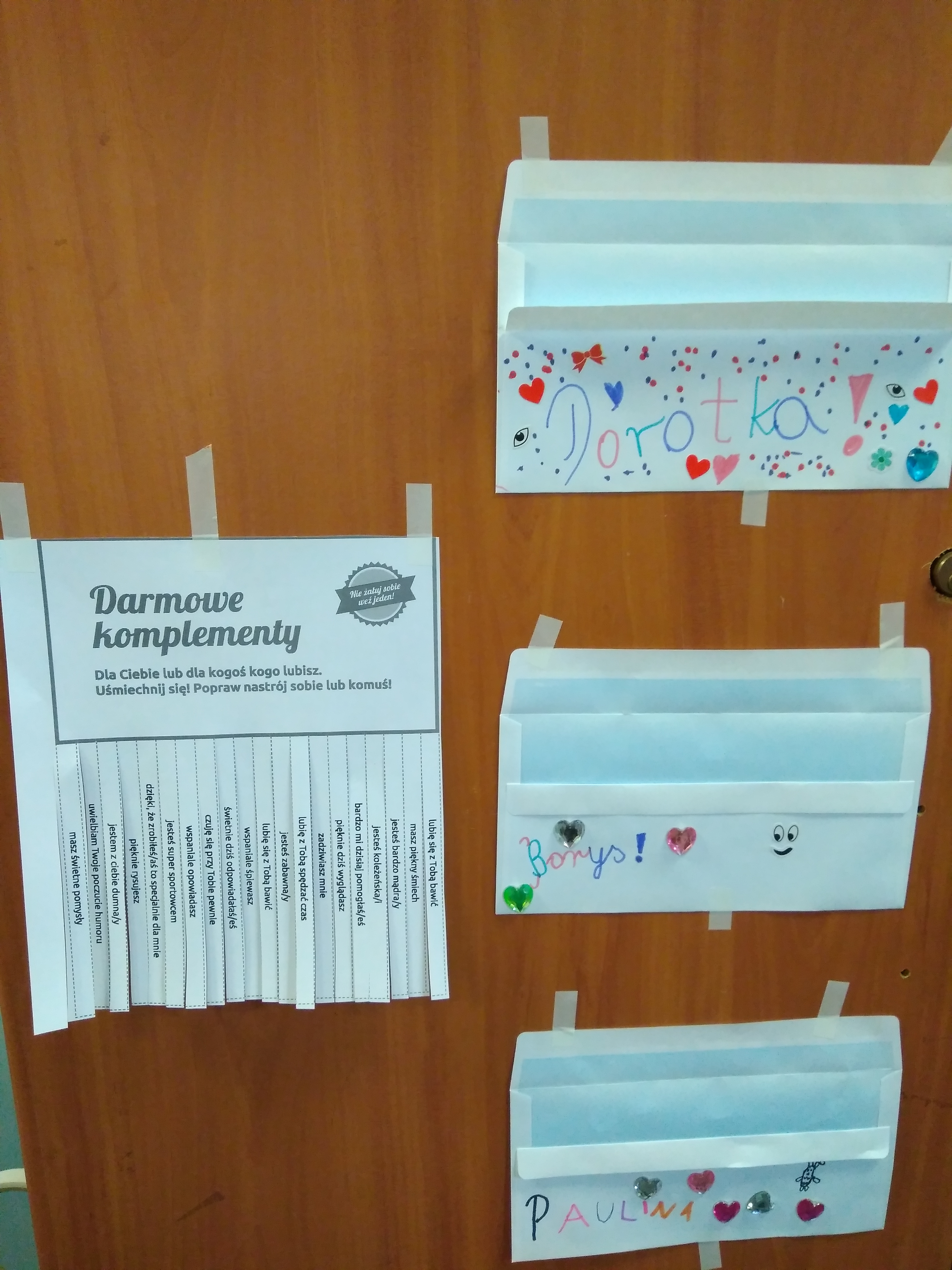 27.05.2019r. grupa „Anielska Kraina” rozpoczęła tydzień samymi przyjemnościami. W ramach zajęć dzieci przygotowały kolorowe koperty z własnymi imionami. Przez najbliższe dni każdy kto chce może wrzucić do takiej koperty miłe słowa, a na koniec tygodnia będzie można je przeczytać i zabrać do domu. Od razu robi się cieplej na sercu!