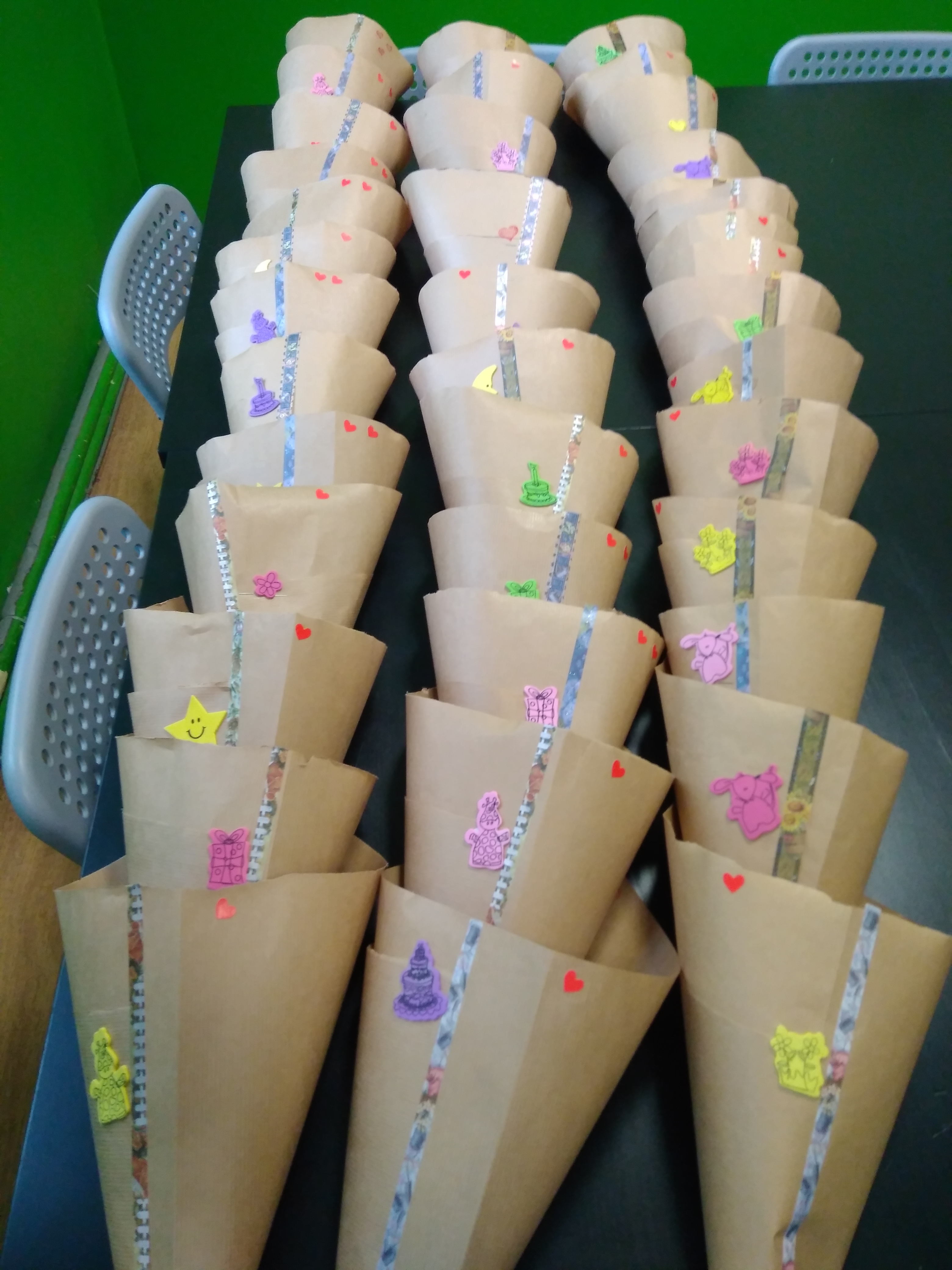 Tegoroczny dzień dziecka świętowaliśmy na słodko 🙂 01.06.2020r. wszystkie wychowawczynie wraz z panią kierownik własnoręcznie wykonały tutki, które następnie wypełniły słodyczami. Wiemy, że cukier należy ograniczać, ale w taki wyjątkowy dzień wszyscy zasłużyli na odrobinę słodkości 🙂 Radość z takiego upominku widać na załączonych zdjęciach 🙂 Prezenty zostały zrealizowane dzięki wsparciu Miasta Gdańsk oraz Kulczyk Foundation.