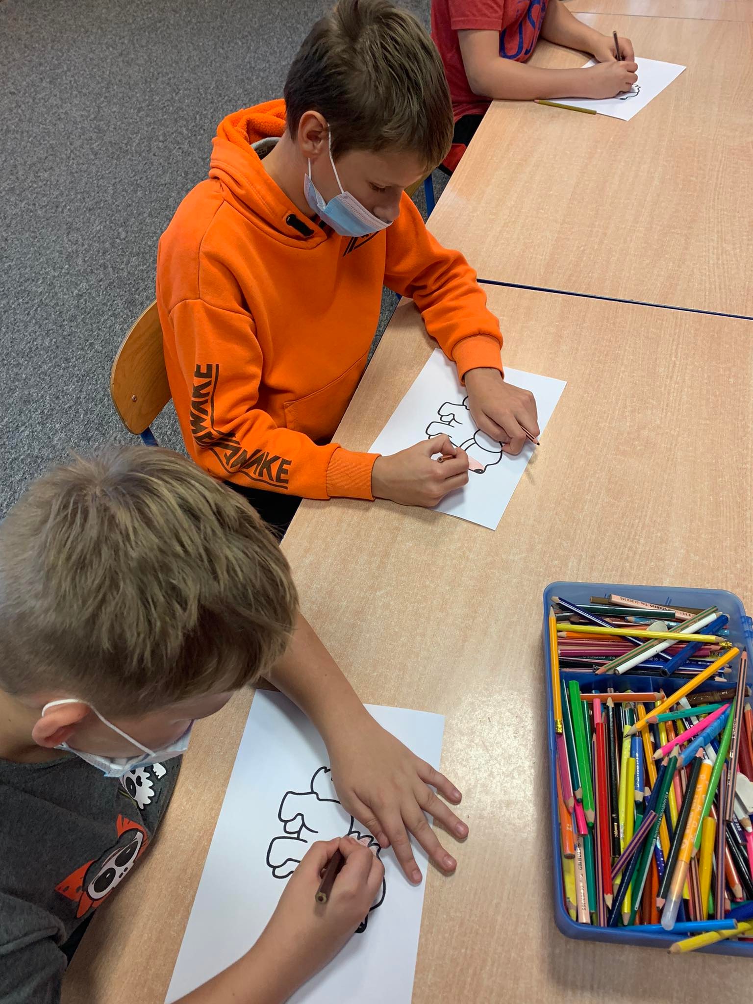 25.10.2021r. świętowaliśmy również ,,dzień kundla”. Podczas tego dnia rozmawialiśmy z dziećmi o tym jak ważne jest odpowiedzialne posiadanie czworonożnego przyjaciela, a także że pies to nie zabawka ani prezent świąteczny. Każdy z członków grupy rysował psa i samodzielnie nazywał go tak, jakby chciał żeby nazywał się jego pies. Rozmawialiśmy też o tym jakie obowiązki wiążą się z posiadaniem psa oraz jak można zaadoptować zwierzaka ze schroniska.