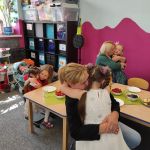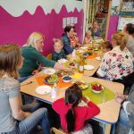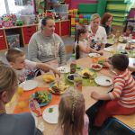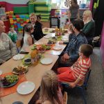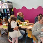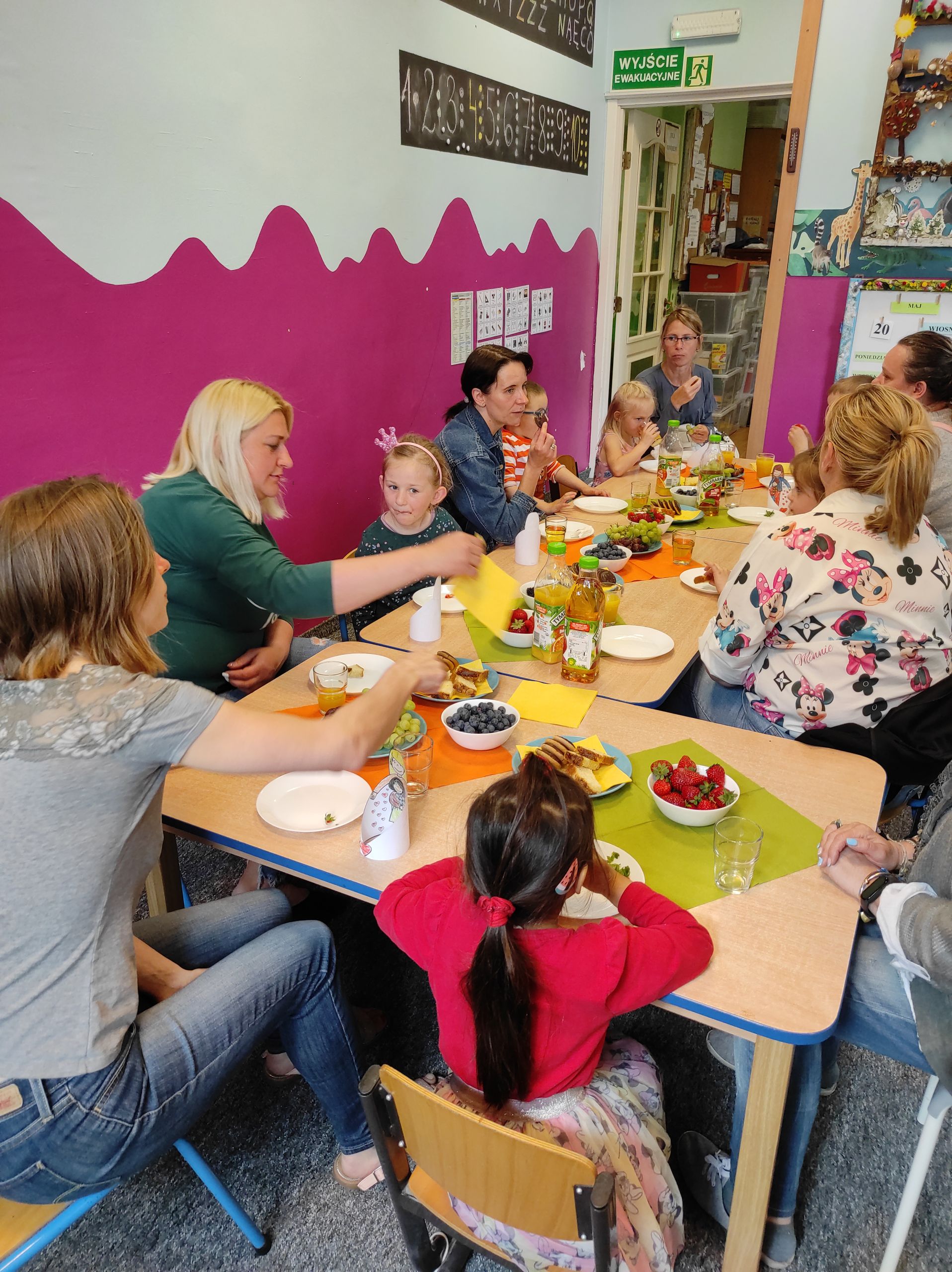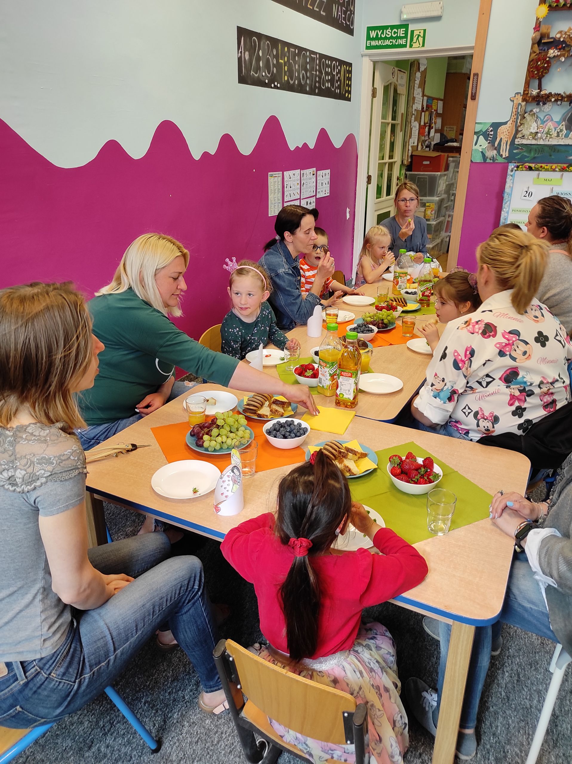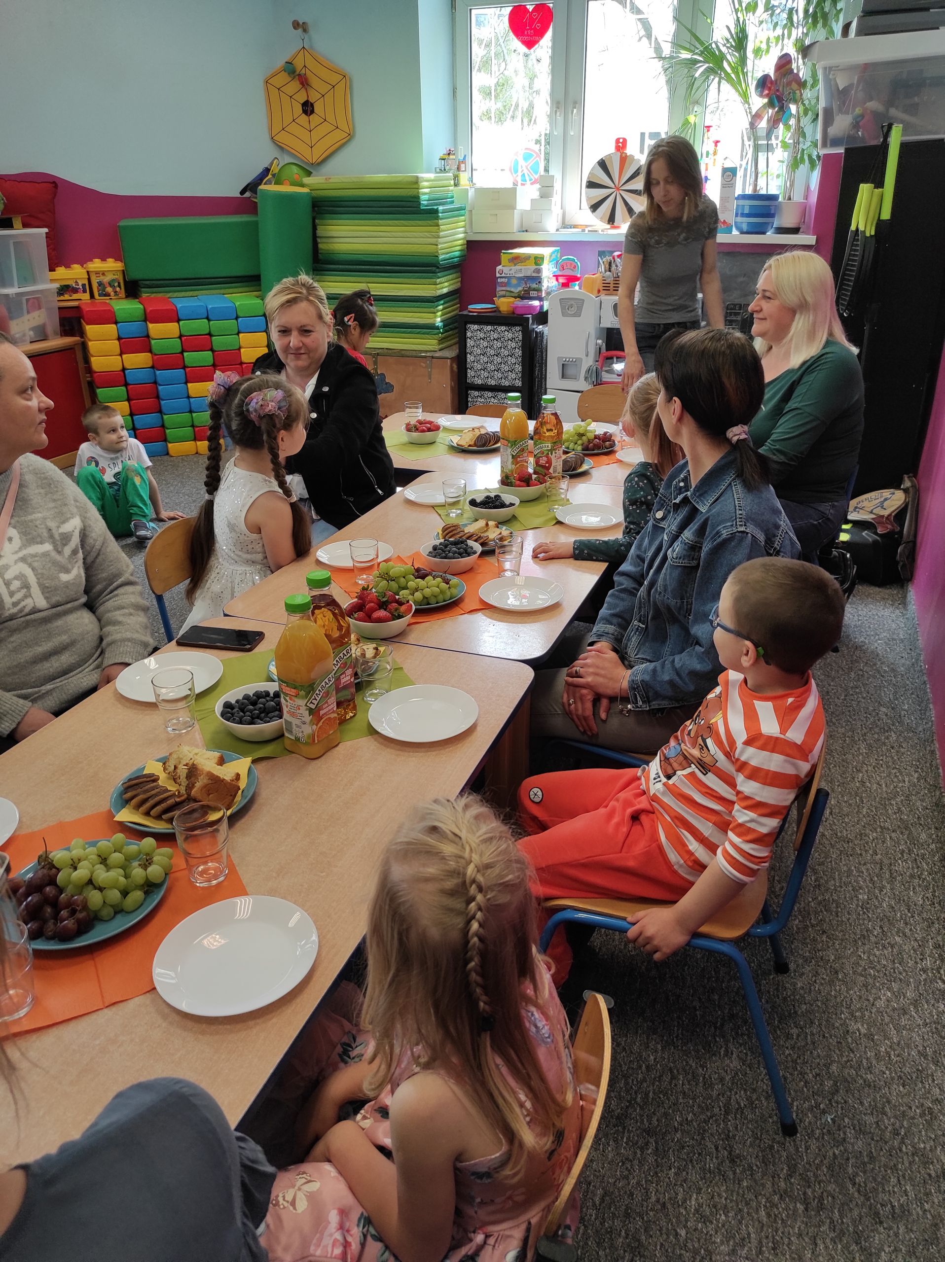 26.05.2022r. „Radosne Krasnale” świętowały Dzień Mamy w naszym Centrum. Wszyscy ogromnie się cieszyli, że nasze tradycyjne spotkanie z poczęstunkiem mogło dojść do skutku 🙂 Dzieci nauczyły się wierszyka z najlepszymi życzeniami dla swoich mam oraz wręczyły własnoręcznie wykonane prezenty. Następnie miło spędziliśmy czas na wspólnych rozmowach i zabawach, a dodatkowo każdy mógł skosztować pysznych owoców i słodkości. Dziękujemy Mamom za udział oraz dzieciom za zaangażowanie! A dla Mam jeszcze raz najlepsze życzenia! 🙂